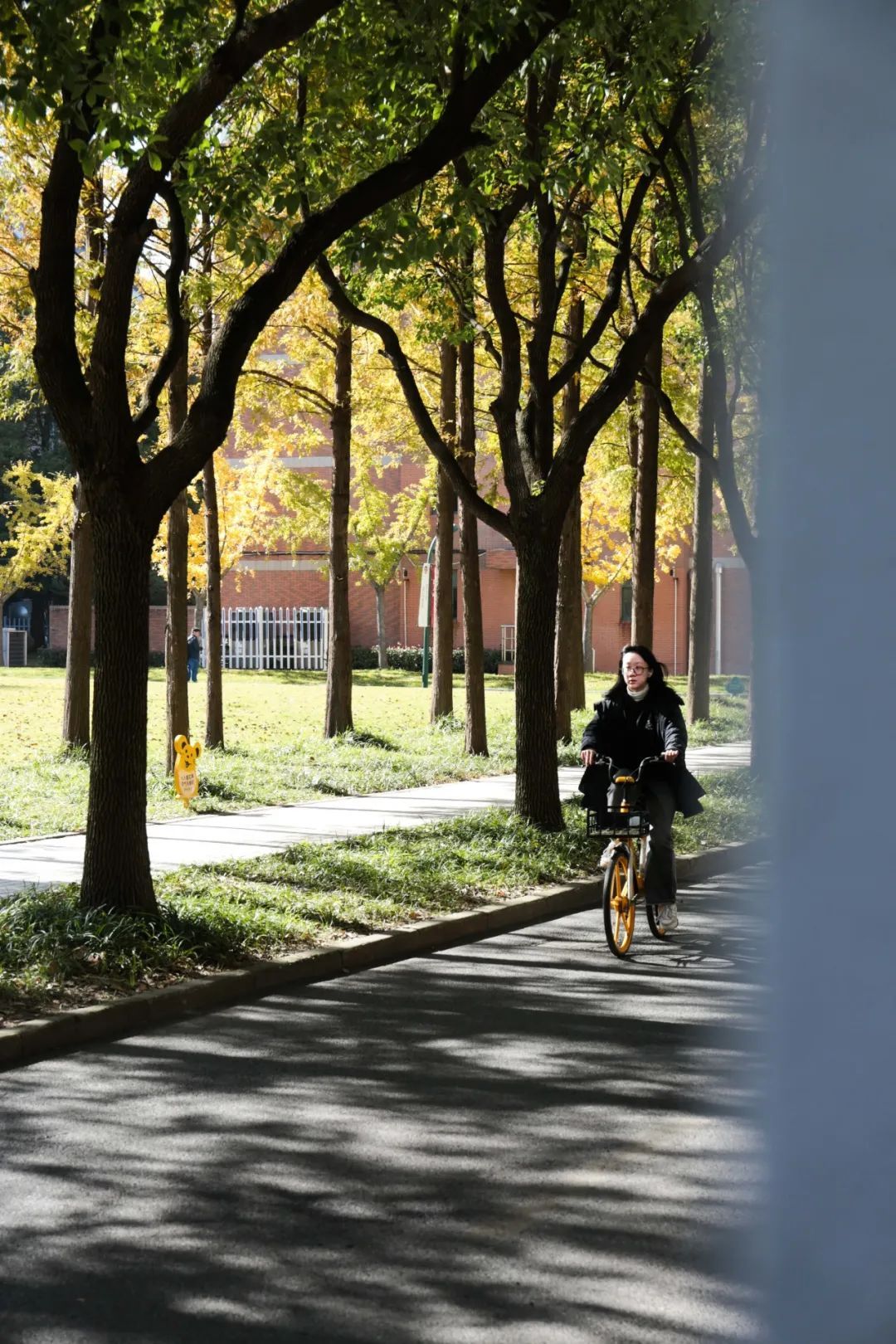 太吟净红的楼宇,佛手黄的银杏叶,缓缓前行的学子,冬日暖阳的斑驳树影,组成了一幅独属于sufe的校园画卷。
