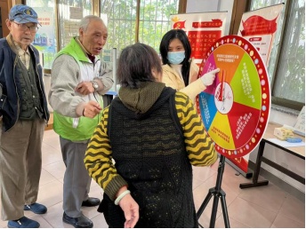 ▲璟庭居民区新时代文明实践站,居民积极参与“文明实践大转盘”互动答题活动