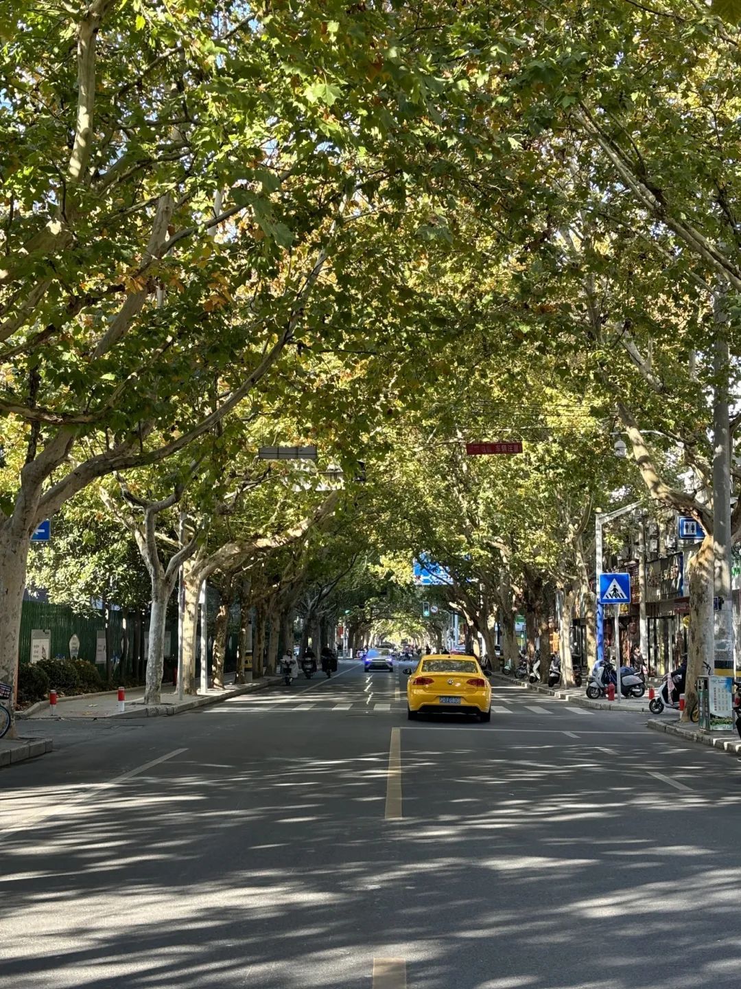 中午时分,记者在西林北路看到,道路两旁高大的悬铃木已经呈现出了浓重的秋日色调,或浅绿或深黄,秋日的浪漫气息日渐浓厚。不过,观赏这样的景致可要抓紧时间了,因为很快,树叶就会开始飘落。