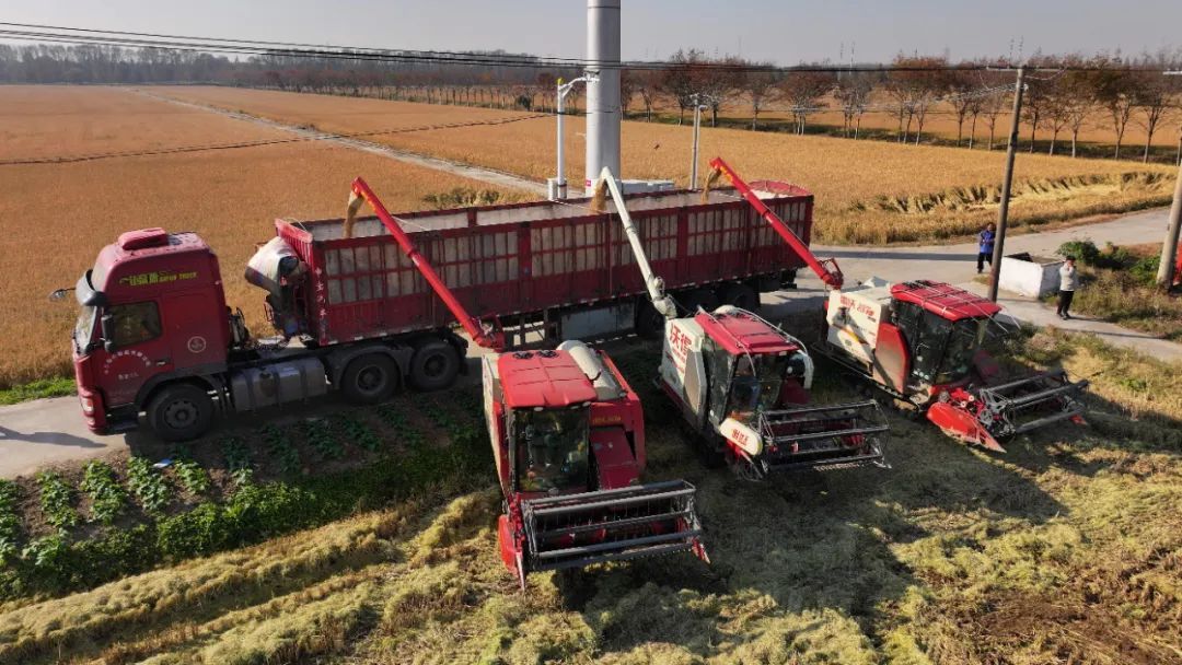 记者现场看到,收割机不时来到田边,将刚收获的稻谷卸进运粮车里。“这些稻谷在播种时就已被订购一空,今天收下来后,直接运往一家提供订单农业服务的公司。”今年合作社依然采用订单农业模式,如今付云龙乐享“甩手掌柜”的角色,再也不用操心卖粮了。