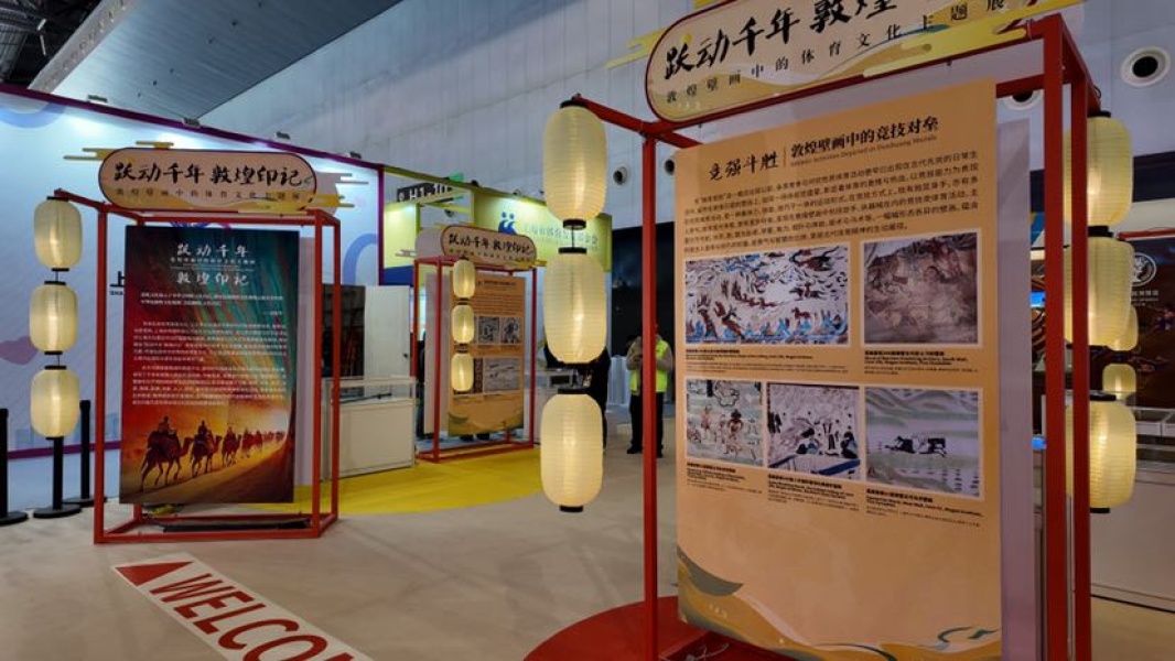 “赛事/体育文化展区”也吸引了不少体育爱好者打卡。其中,敦煌壁画中的体育文化主题展展现了中华优秀传统文化与中华体育精神的融通辉映。