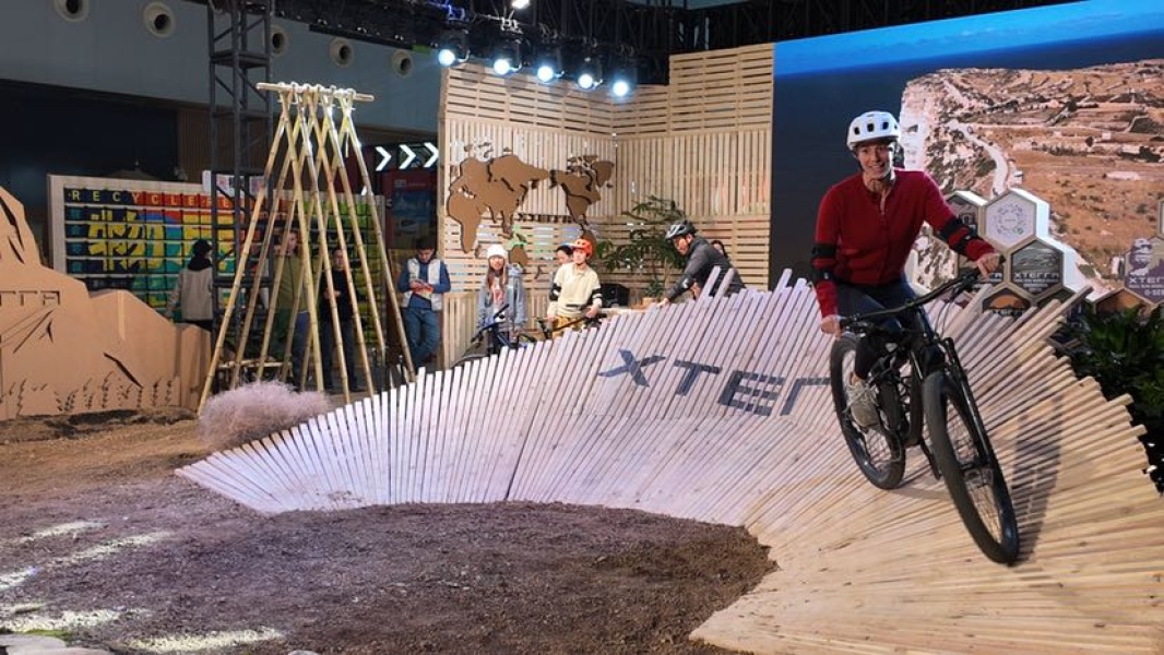将山地车赛道“搬”到展会现场。全球户外运动生活方式品牌XTERRA此次不仅邀请知名选手、教练带来多场山地车表演,还特别开放限量教学名额。“展会期间,对山地车感兴趣的观众可以通过小程序预约体验,由顶级教练一对一指导。”品牌工作人员介绍:“我们去年在苏州落成了品牌基地,此次参展也想向更多人推介品牌,让更多人了解我们的可持续发展理念。”