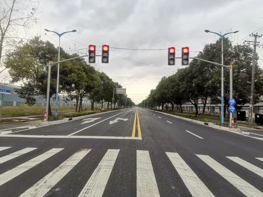 为改善这一状况,提升路口车辆通行效率及安全性 ,新桥镇启动了中修工程,本次中修西起文工路交叉口,东至茹塘路交叉口,路线全长 876.92m,车行道宽为14m。主要对原机动车道沥青路面进行中修,铺设新沥青路面。同时,针对非机动车道和人行道实施了局部养护,更换机非分隔带侧平石,确保行人与非机动车的安全与舒适。工程还涉及分隔带雨水口的抬升优化,以及在关键出入口增设雨水收水口,提升了道路的排水性能。为增强道路指引与安全,重新规划并划设了清晰的道路标线,完善了各类交通标志与管理设施,为市民出行提供了更加明确指引。