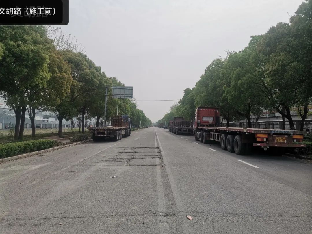近年来,随着区域开发建设,周边企业入驻增多,道路交通流量显著增加,加上运营已久,文胡路路面出现了沥青开裂、路面积水等问题。