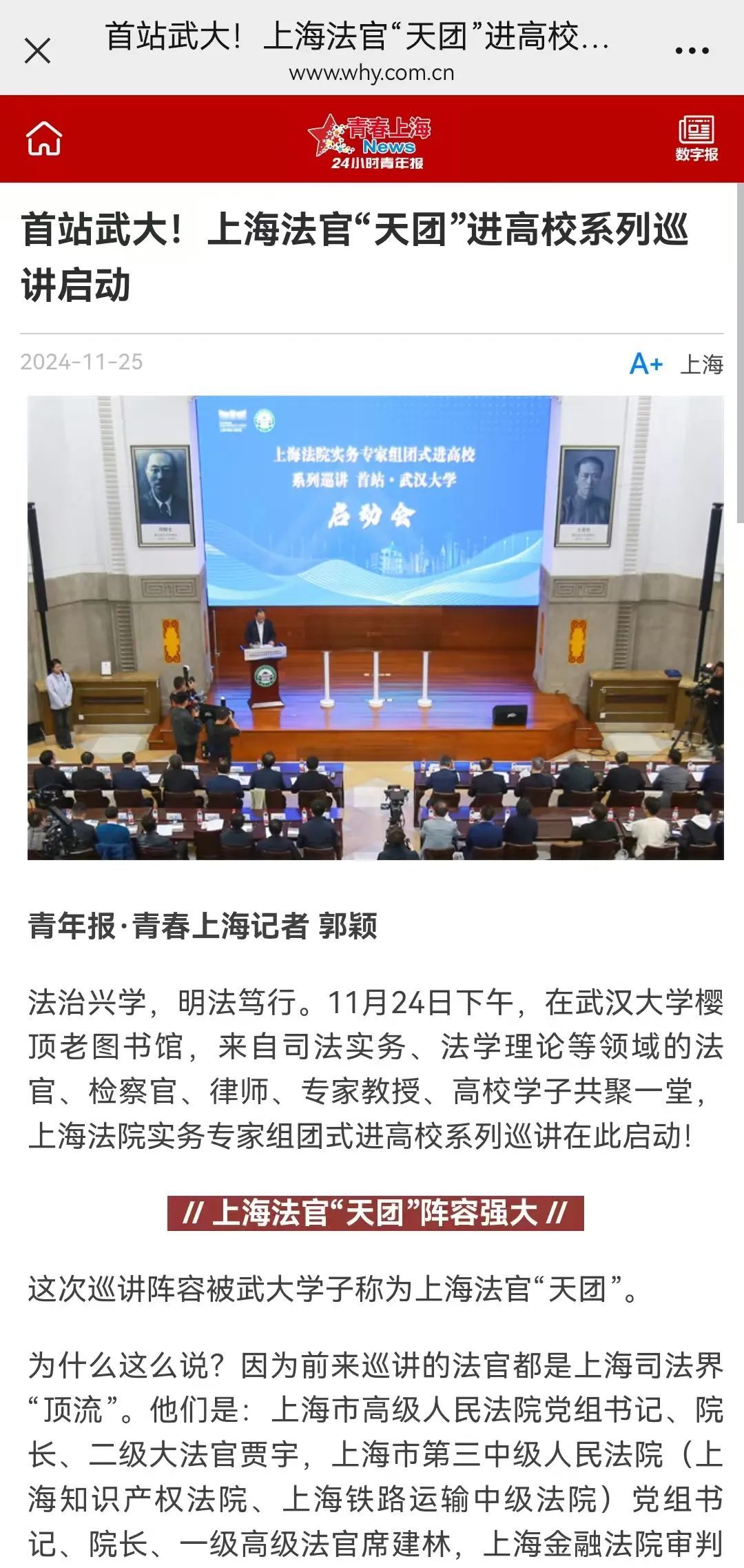 这次巡讲阵容被武大学子称为上海法官“天团”。