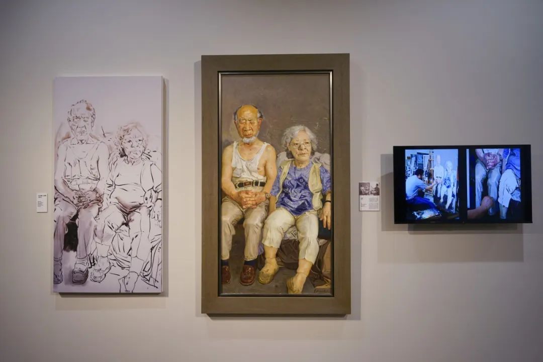 在26、27厅的部分作品旁展示了忻东旺的创作草图与小稿,例如《金婚》、《穿税官服的农民》、《世面》,通过这些小稿,观众得以直观感受艺术家从初步构思到最终完成作品的思维演变。草图与成品的对比,不仅呈现了艺术家娴熟的技巧,还揭示了艺术创作背后的思考、探索与实验。