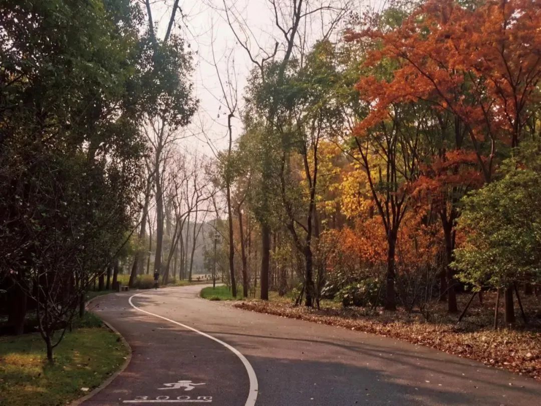 长宁外环绿道北至苏州河一南近沪青平公路,全长约6.25公里。秋天的长宁外环绿道是一片金黄,骑行其间,远观层林尽染,近看落叶缤纷,美景层出不穷。绿道还拥有采绿庭、有年堂、鱼丽阁、振鹭轩四座驿站,给运动者提供了休息和服务场所。