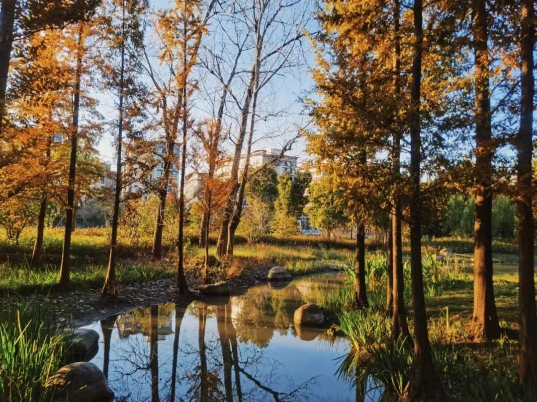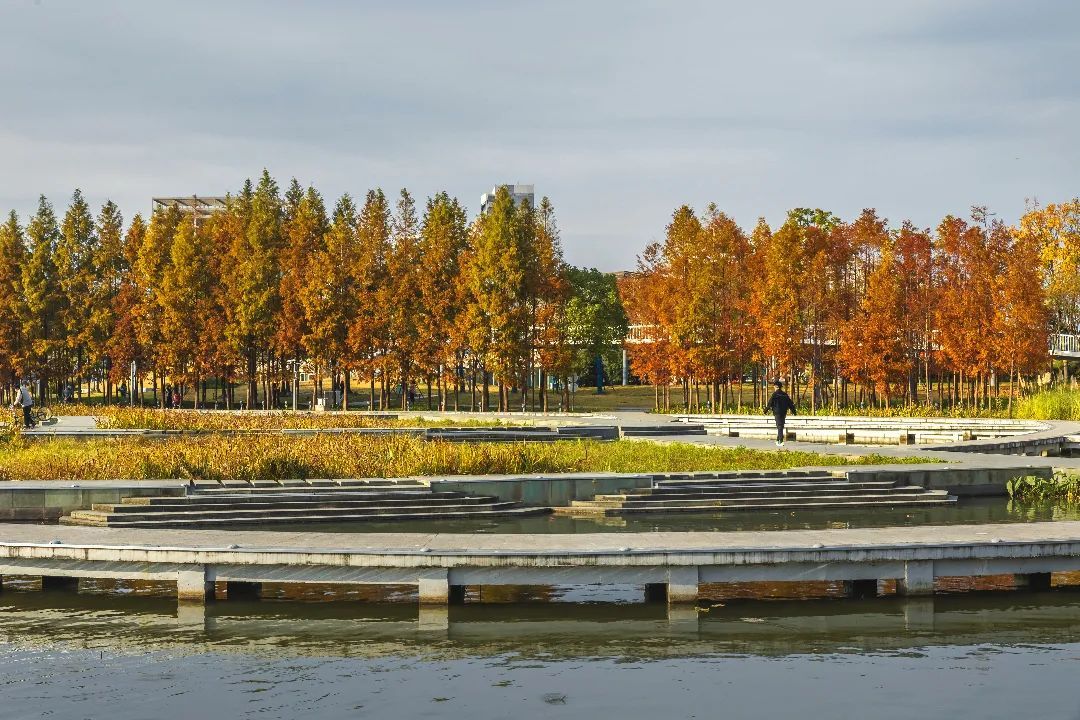 远香湖的环湖道路包含步道、活力跑道、城市骑行道,沿途将上海保利大剧院、嘉定图书馆等网红建筑串联了起来。骑行途中,可以欣赏到秋日层林尽染的远香湖,整片湖水沐浴在阳光中,光影与水色相互交融,亦诗亦画。