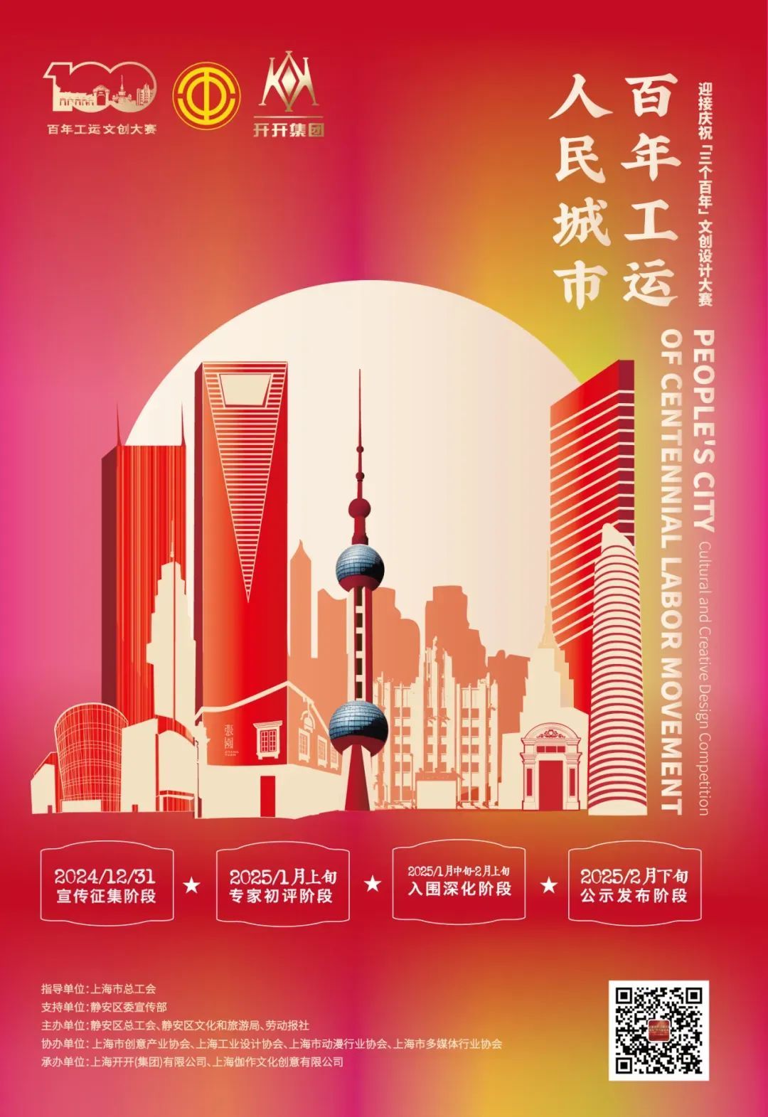2025年是中华全国总工会成立一百周年、上海总工会成立一百周年、五卅运动一百周年。为传承弘扬红色文化、促进红色消费,上海将首次举办“人民城市 百年工运”文创设计大赛。