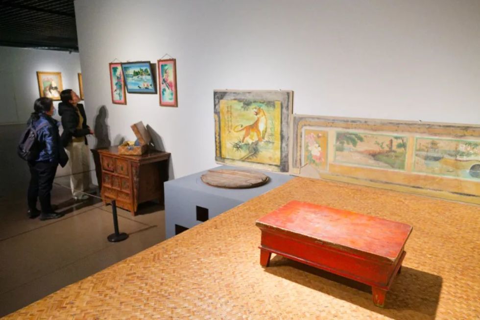 “言传身教”版块聚焦忻东旺在艺术教学中的探索与实践。通过艺术家在高校的教学视频和教学手稿,观众得以一窥艺术家教学过程中对艺术创作与传承的独到理解与深刻思考以及其对当代艺术教育的深远影响。此外,展览实物再现了忻东旺早年为农民绘制的“炕围子”作品。尽管起步于艰苦的乡村生活,他从未放弃对艺术的执着追求,作品反映了他对乡土文化的深厚情感,也展现了他不畏困境、坚守艺术理想的奋斗精神。