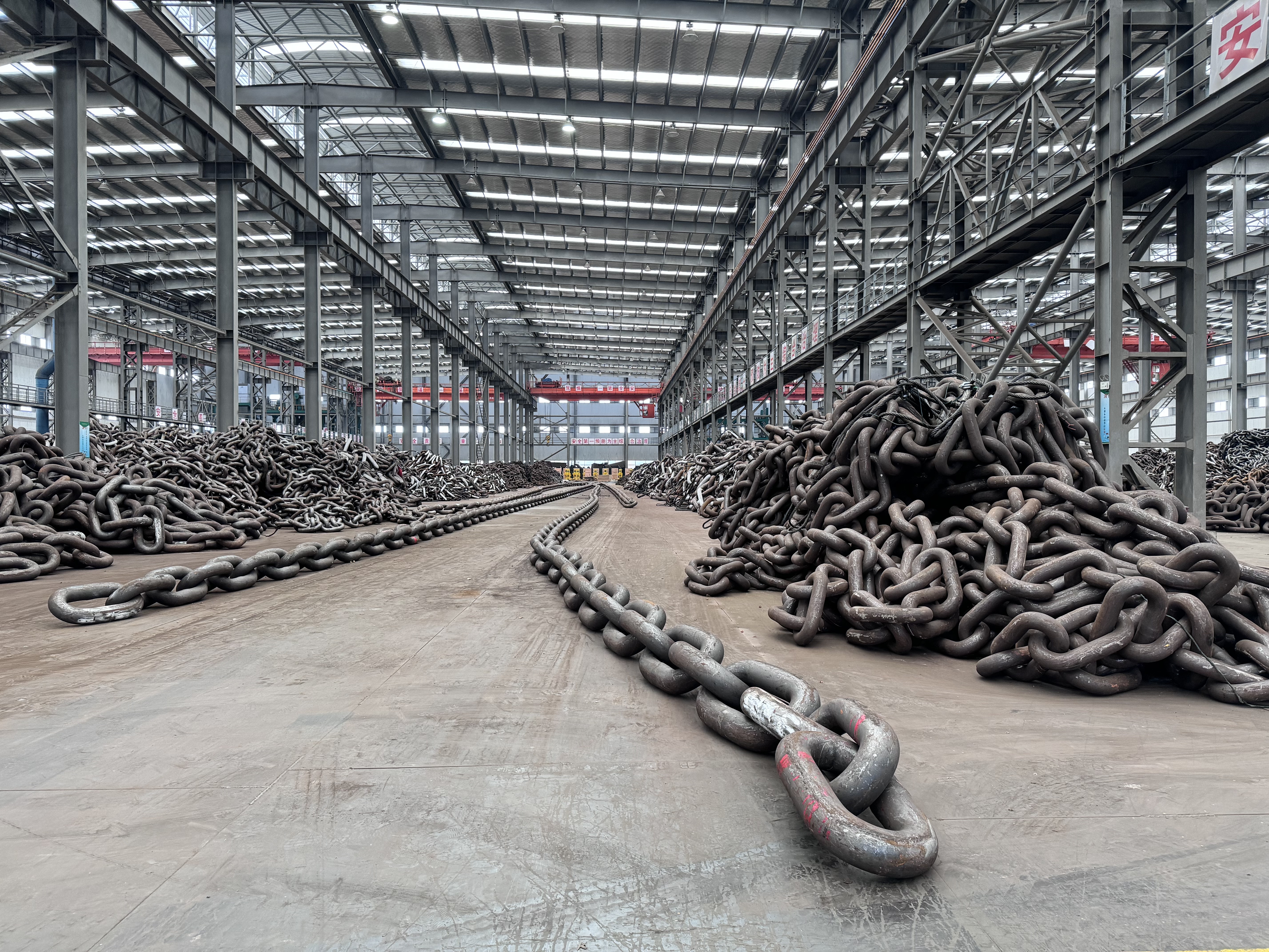 一条锚链,何以征服全球市场超60%的份额?带着疑问,记者来到全球最大的锚链制造生产线——江苏亚星锚链股份有限公司。厂房内,工作人员正熟练地制作直径220毫米的锚链。另一侧,各种制作完成的链条堆满厂房,即将交付给客户。