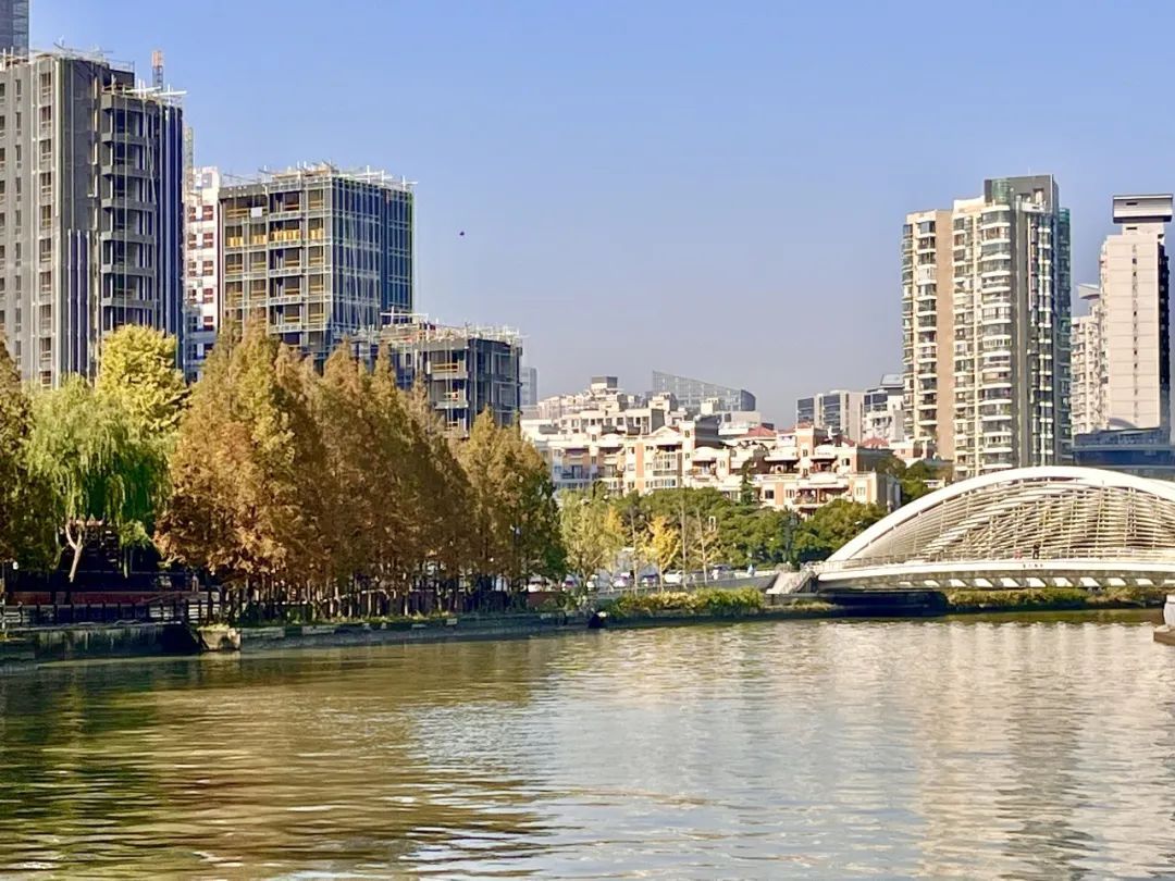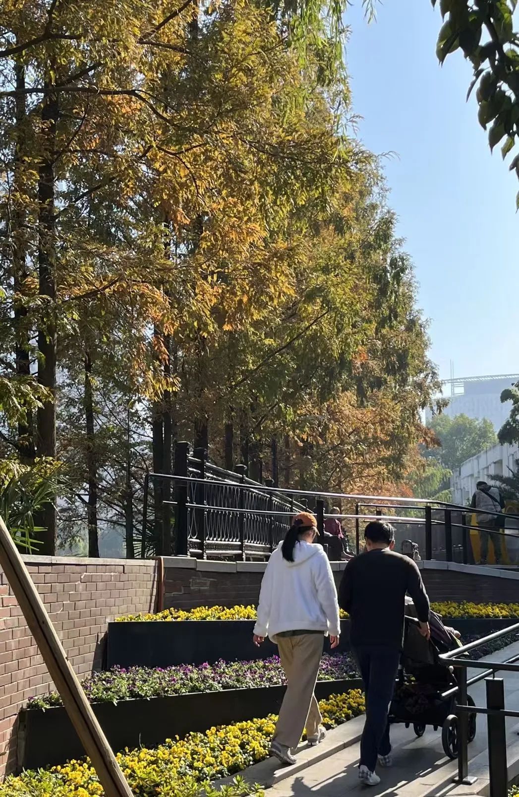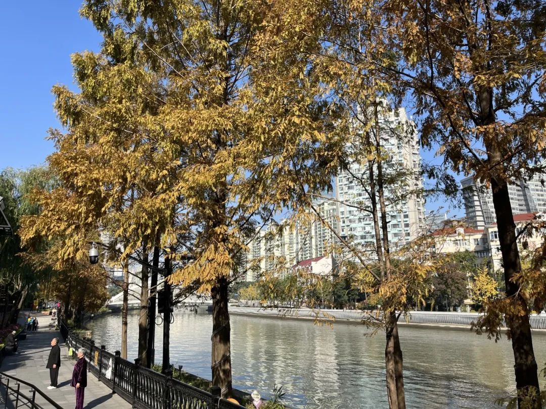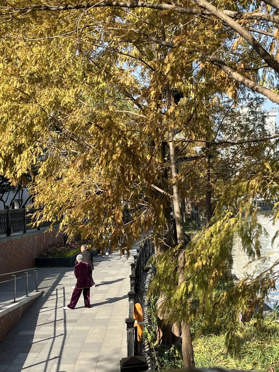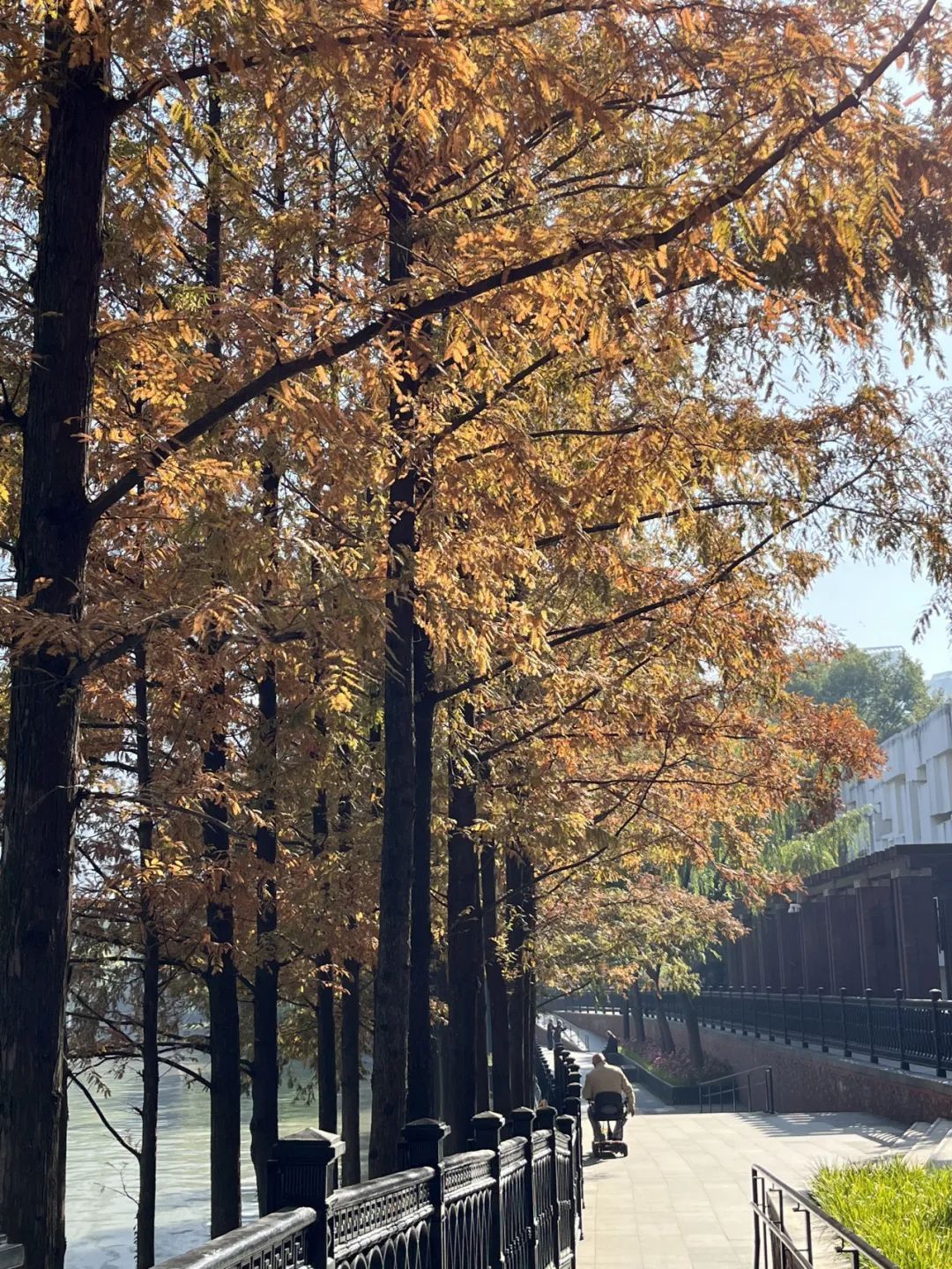 彩林尽染醉,斑斓无尽时。不知不觉间,在静安区秀美的蝴蝶湾公园,苏州河畔的水杉也悄悄换上了“冬装”。