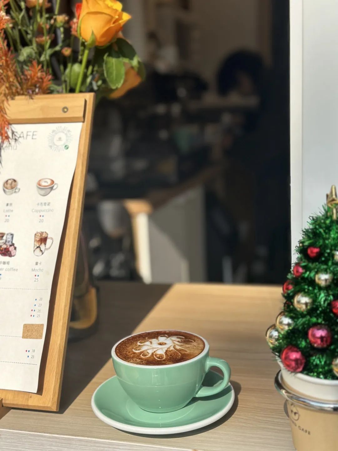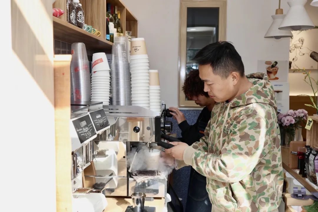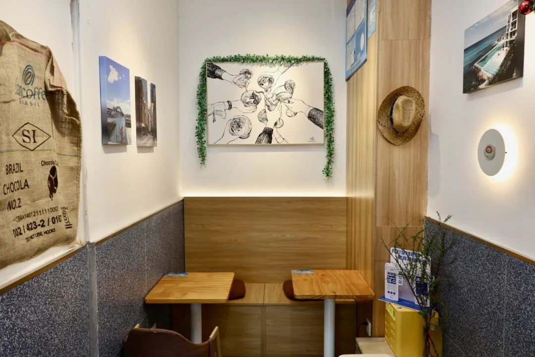 除了经典款的咖啡,店里也会推出当季特调,如新会陈皮美式、柚子美式、椰青美式等。夏天的特调菠萝冷萃、青梅冷萃等,把水果的清甜甘香与美式咖啡相结合,解暑清凉、提神醒脑。桂花飘香的金秋,店里推出“秋意浓,赏秋香”两款产品,在经典拿铁上洒满鲜艳的玫瑰花瓣和金黄色的桂花,应时应景,有颜有味。气温下降,“甜甜圈系列”又将暖心上市。所谓的“甜甜圈系列”并不是甜点,而是两款新品咖啡,因为奶泡浓郁厚重得像甜甜圈,彭先生就起了这个名字,一款是提拉米苏口味,一款是抹茶口味,味道香醇浓郁,特别适合这个日渐寒冷的初冬。