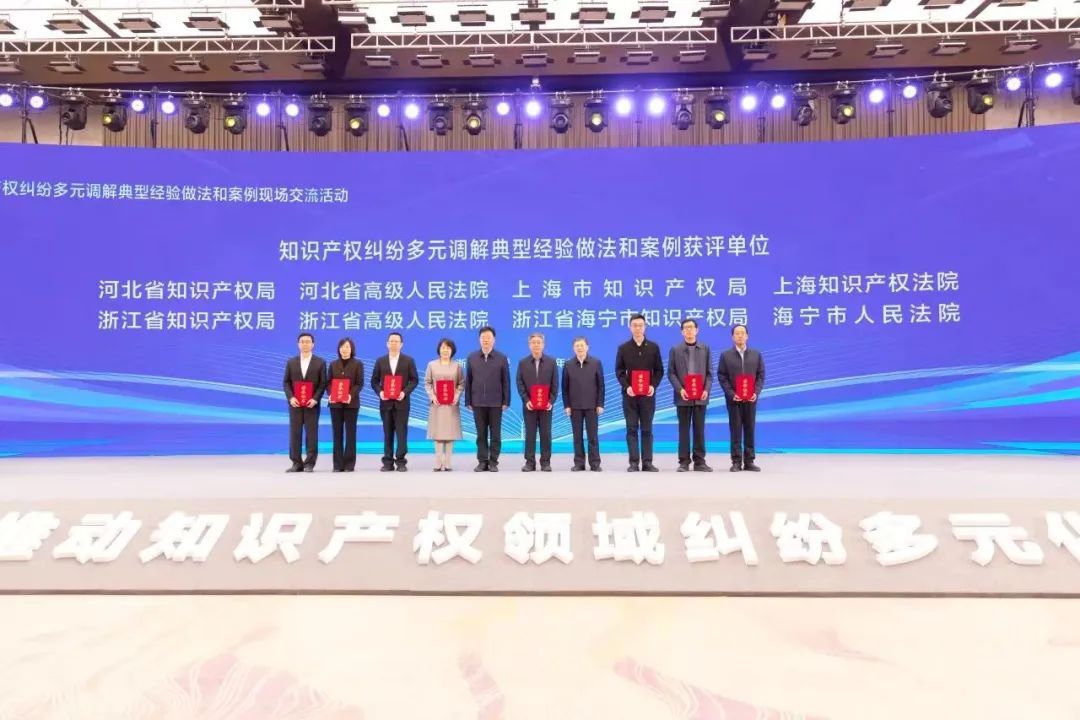 11月27日,国家知识产权局会同最高人民法院举办全国首届知识产权纠纷多元调解典型经验做法和案例现场交流活动。国家知识产权局副局长胡文辉、最高人民法院副院长茅仲华、中央政法委三局副局长邵建斌、浙江省人民政府办公厅副主任邬剑波出席会议并致辞,国家知识产权局知识产权保护司司长郭雯主持现场活动。上海市知识产权局副局长余晨参加活动。