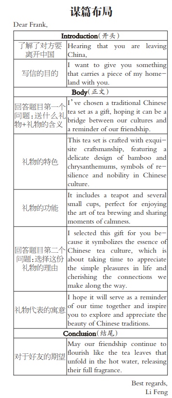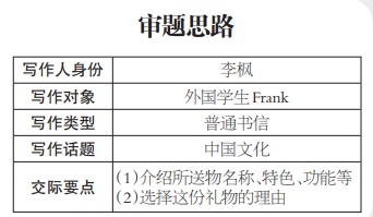 2024中考作文题:假如你是李枫,就要送别学校国际交流节上认识的外国学生Frank, 你送给他一个有中国元素的礼物,请你为他写一张贺卡,并写上你对他说的话。