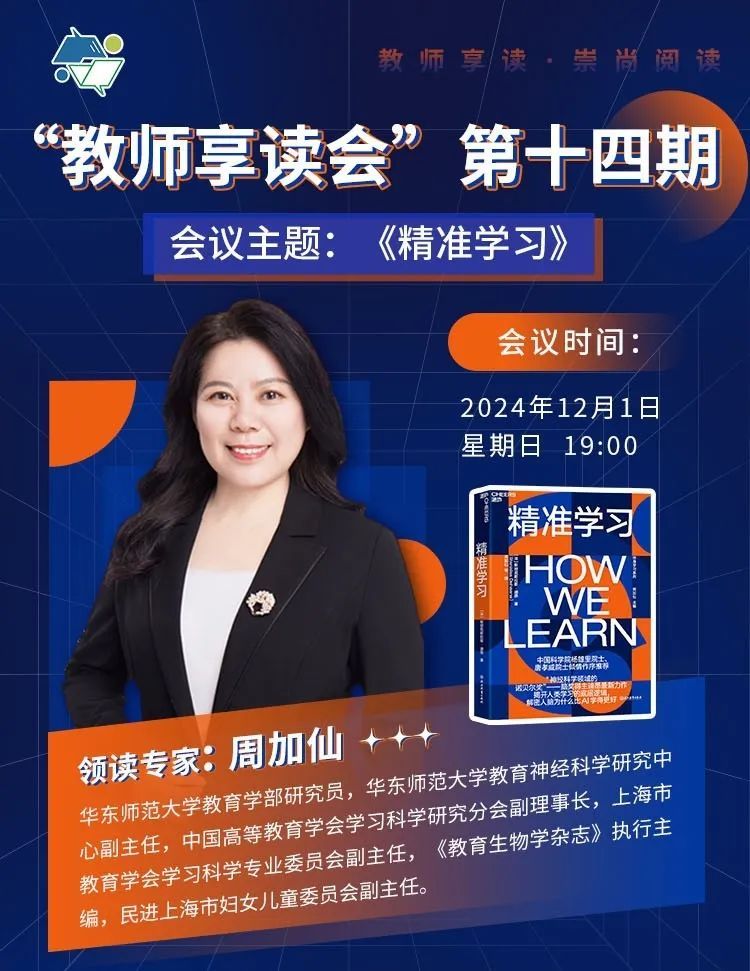 本次活动共读的图书是华东师范大学教育神经科学研究中心副主任、中国教育学会脑科学与教育研究分会理事周加仙翻译的斯坦尼斯拉斯·迪昂教授的著作《精准学习》。