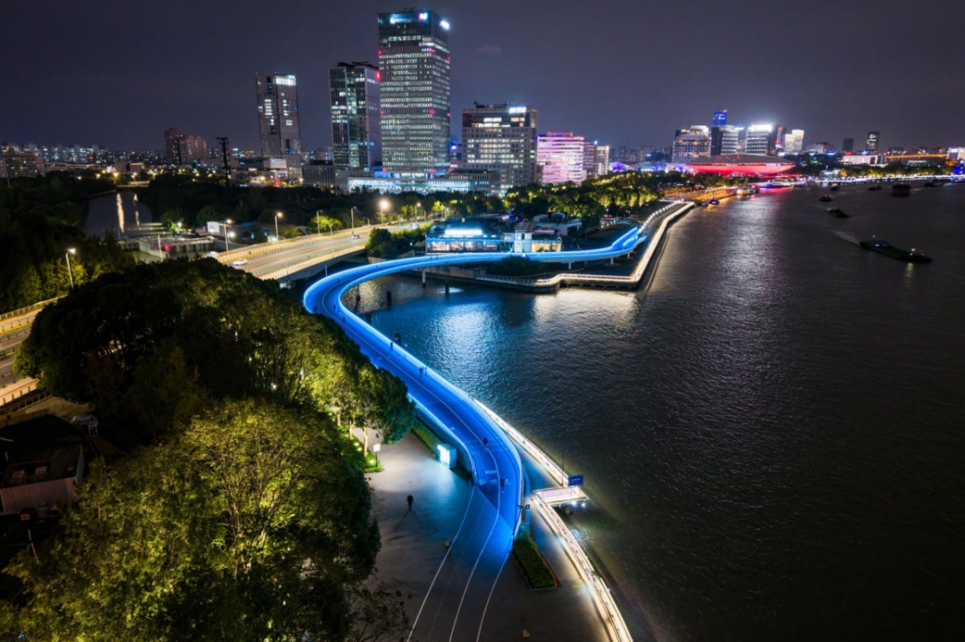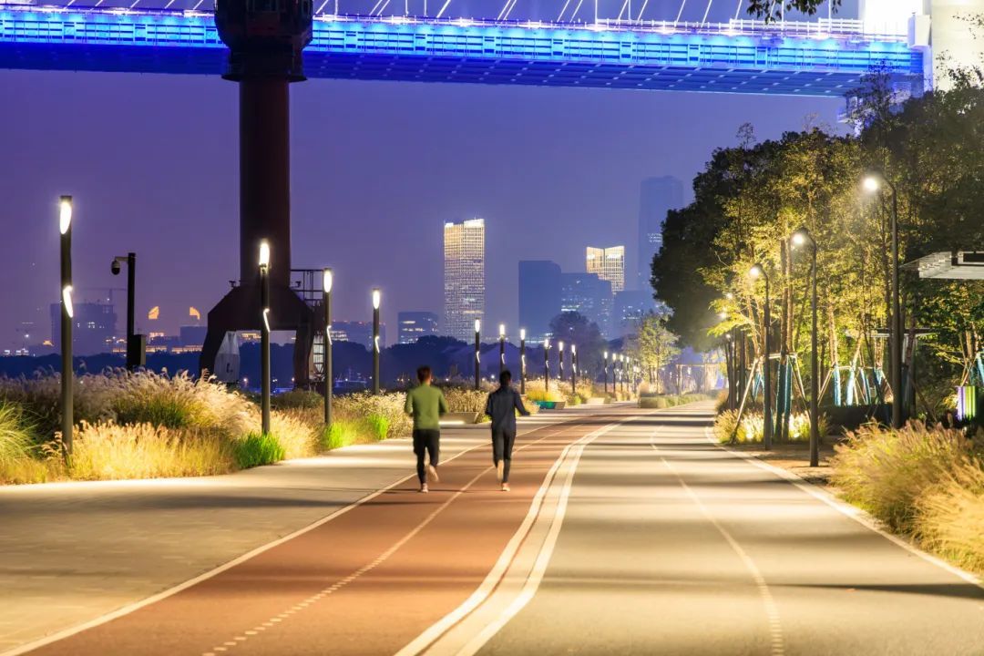 从杨浦大桥到闵行区界,24公里的浦江两岸,灯火辉煌,将上海这座国际大都市装点得如梦如幻。外滩的万国建筑群,在夜色中更显庄重与典雅;小陆家嘴的天际线在夜空中熠熠生辉,令人震撼;江边的桥梁、塔吊、码头,在夜晚灯光的衬托下向游客诉说着上海这座城市悠久的历史。浦东滨江的夜景不仅美丽动人,更充满了活力与激情。夜晚在滨江跑步的你,一定能沉浸在这份美好之中,享受着都市生活的便捷与乐趣。