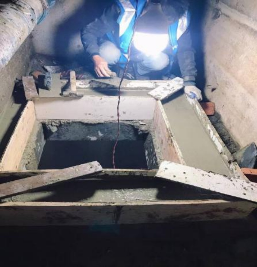 此前,物业管家接到92号业主报修,地下一楼有漏水和异味问题,恶臭让人难以忍受。但是该夹层没有检修口,结构比较复杂,很难确定具体的渗水位置,且施工难度大。物业多次尝试维修,但都收效甚微。