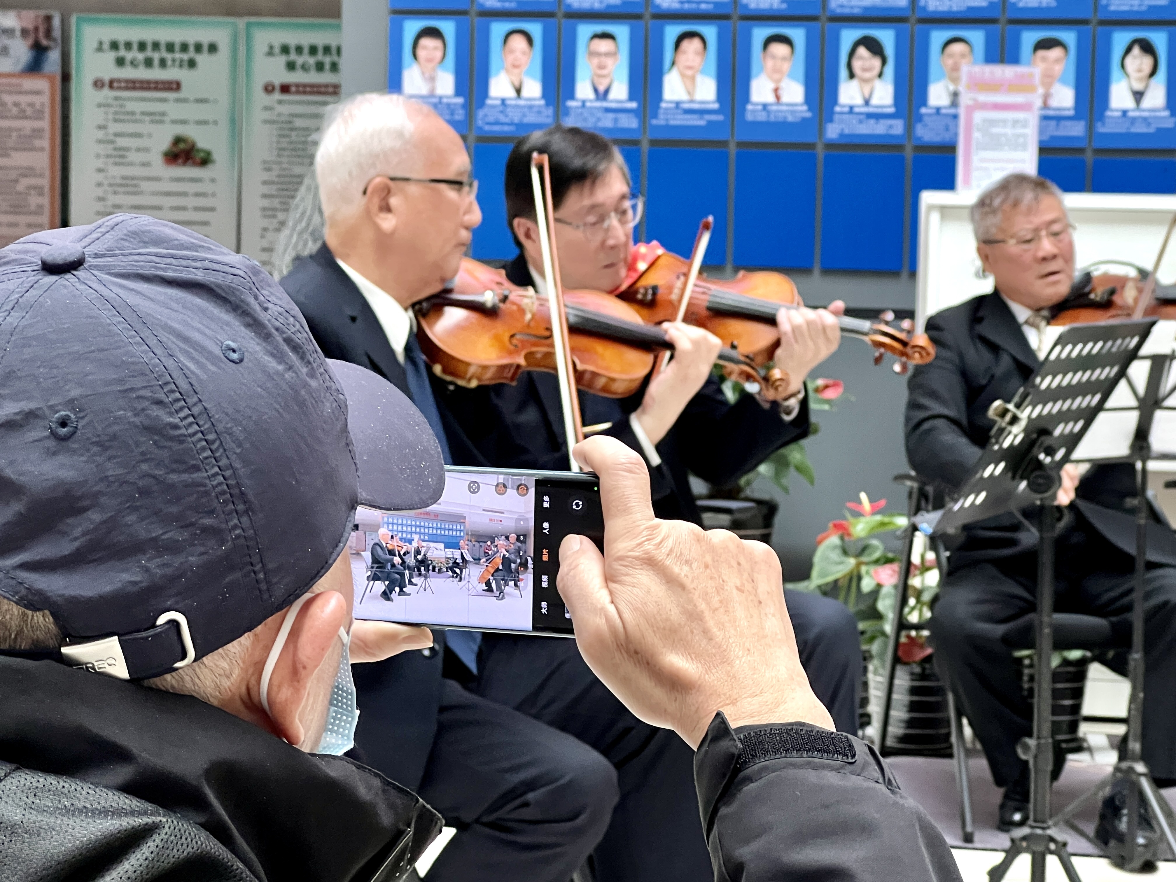 12月3日上午,上海市静安区市北医院新时代文明实践站内传来悠扬的琴声——一场名为“乐享健康”的小型公益音乐会正在这里上演。
