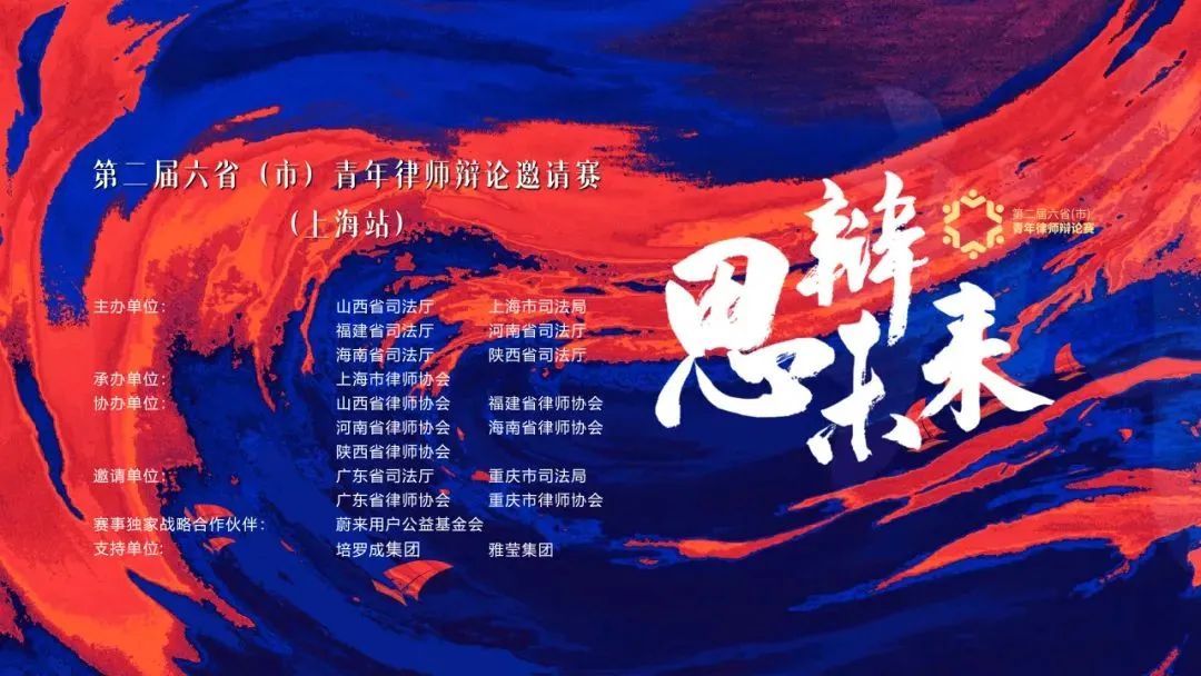 本届赛事由山西、上海、福建、河南、海南、陕西六省(市)司法厅(局)联合举办,上海市律师协会承办,山西省律师协会、福建省律师协会、河南省律师协会、海南省律师协会、陕西省律师协会协办;广东省司法厅、重庆市司法局、广东省律师协会、重庆市律师协会应邀共同参与。辩论赛环节结束后,经六省(市)协商决定,第三届青年律师辩论赛举办地为山西省,上海市律师协会会长邵万权与山西省律师协会会长高剑生交接赛旗。