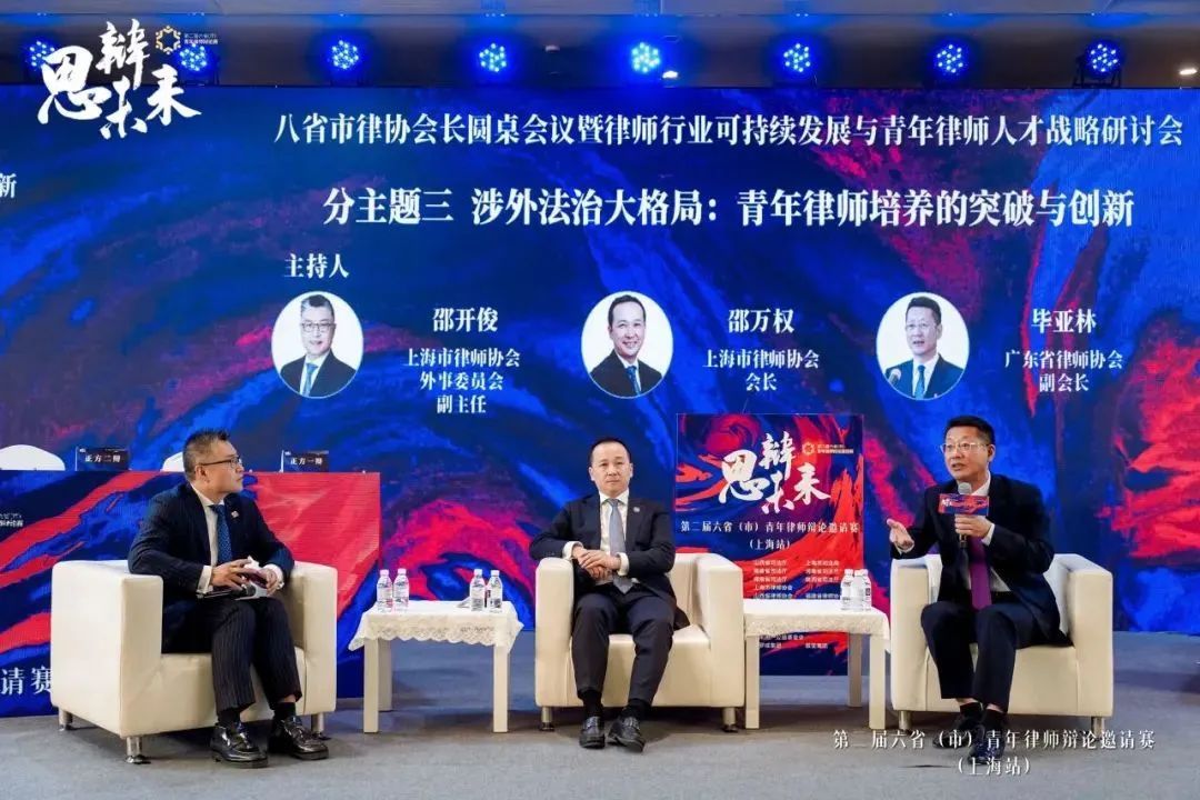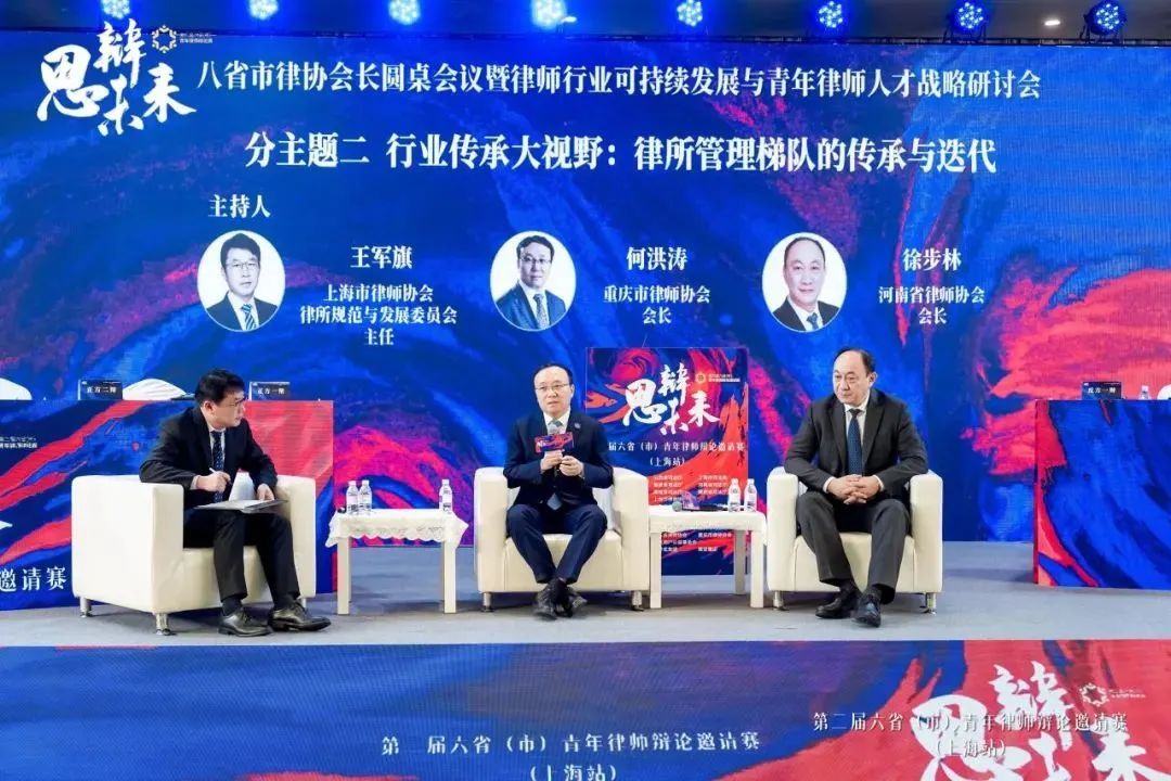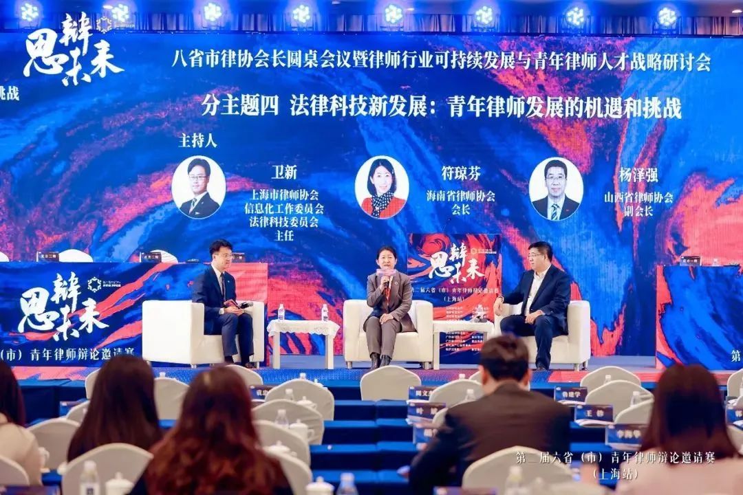 赛中,八省市律协会长圆桌会议暨律师行业可持续发展与青年律师人才战略研讨会举办。研讨会分行业发展新趋势、行业传承大视野、涉外法治大格局以及法律科技新发展等四个交流主题。会长们与青年律师展开互动交流并现场答疑解惑。