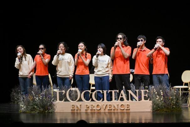 中场时分,迎来了特别演出环节。由视障朋友组成的美爱融合人声乐团,与欧舒丹的三位员工共同演绎了精彩绝伦的阿卡贝拉合唱。此时,空气中弥漫着淡淡的薰衣草芬芳,那动人的旋律与歌声交织在一起,宛如天籁之音,将人与自然、人与社区紧紧相连。