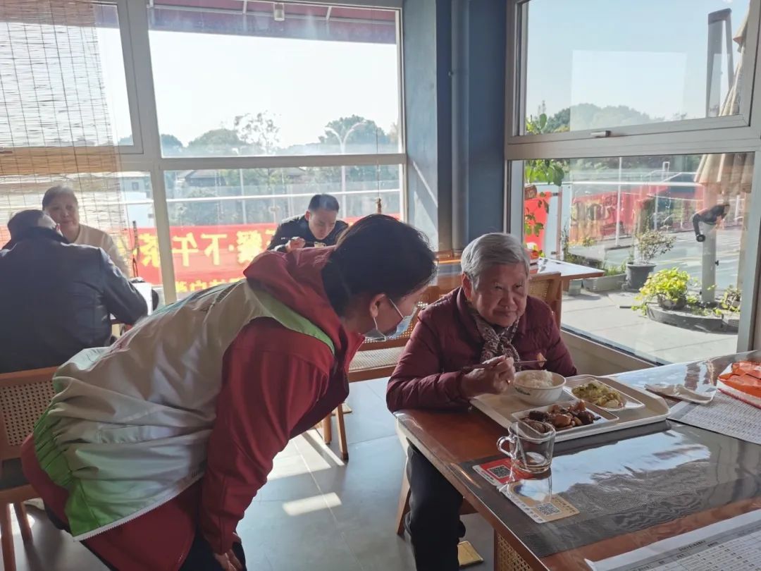 据介绍,“爱心助老餐”在菜品设计上充分考虑老年人的饮食特点,以少油少盐、软糯易消化为原则,选用新鲜食材,注重营养均衡搭配。如萝卜烧土猪肉、杏鲍菇炒杭白菜、蒜苗炒肉丝等,既健康又美味。“菜很好吃,能咬得动,晚上我还要来。”刚吃完午饭的87岁李阿姨开心地说道。