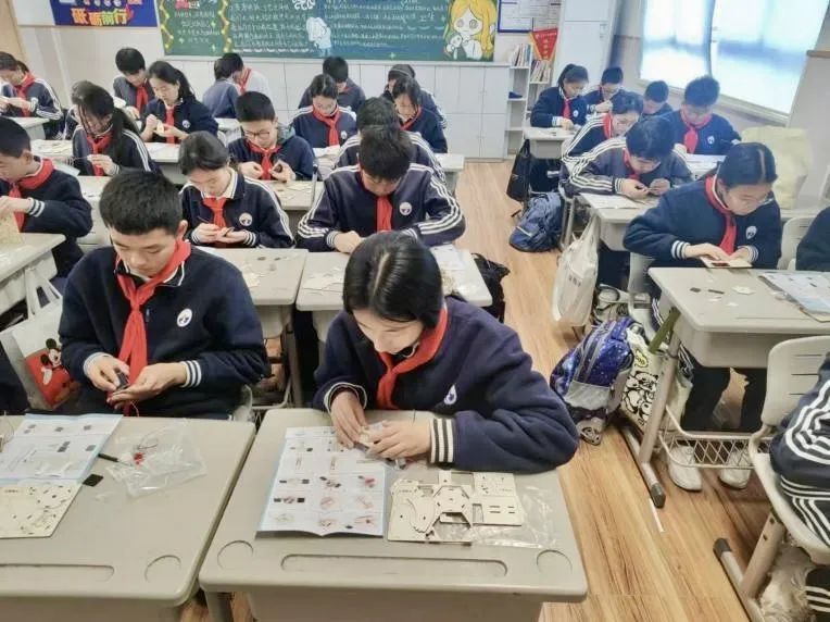 活动还特别设置了C919电动航模制作与天宫空间站模型组装环节。学生在老师的指导下,完成了中国自主研发的大飞机和空间站模型的制作。