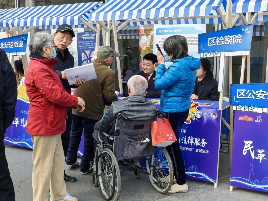 12月4日,长宁区检察院公益检察室干警参加长宁区“宪法宣传周”主题活动。青年干警化身“法律摊主”,通过设置普法易拉宝、面对面宣讲、以案释法等形式开展宪法宣传,并接受法律咨询。