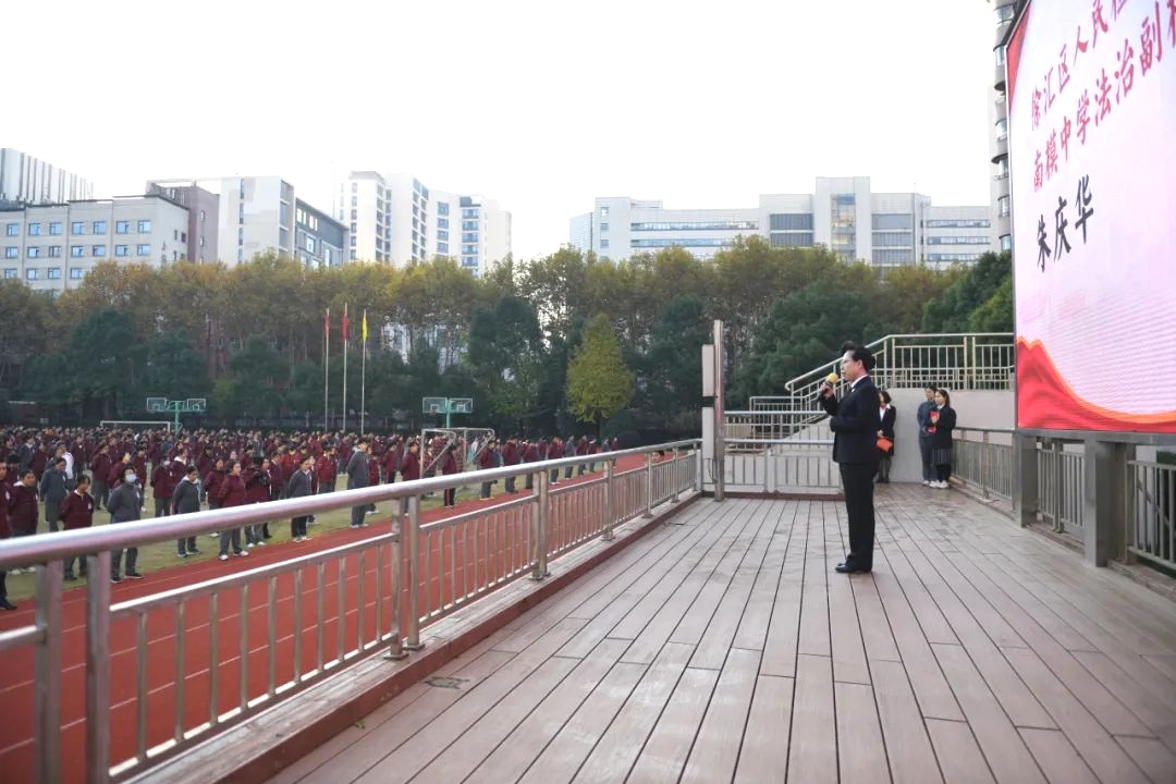 日前,徐汇区检察院党组书记、检察长朱庆华作为南洋模范中学法治副校长,受邀与全校师生共同参加周一升国旗仪式,并以“宪法在心中 法治伴成长”为主题作了国旗下讲话。同学们纷纷表示要不断加强宪法和其他法律知识的学习,积极主动学法、知法、守法、用法,增强自我保护意识,争当守法好少年!