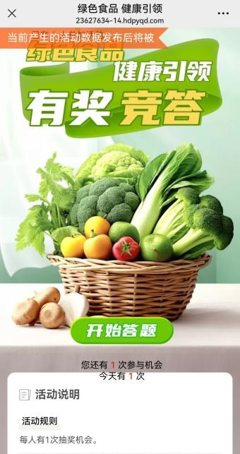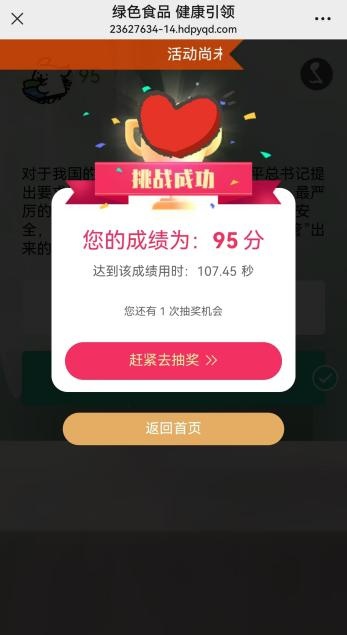 完成20道关于绿色食品和农产品质量安全的题目,总分为100分,答题总分超过60分,即可参与抽奖。