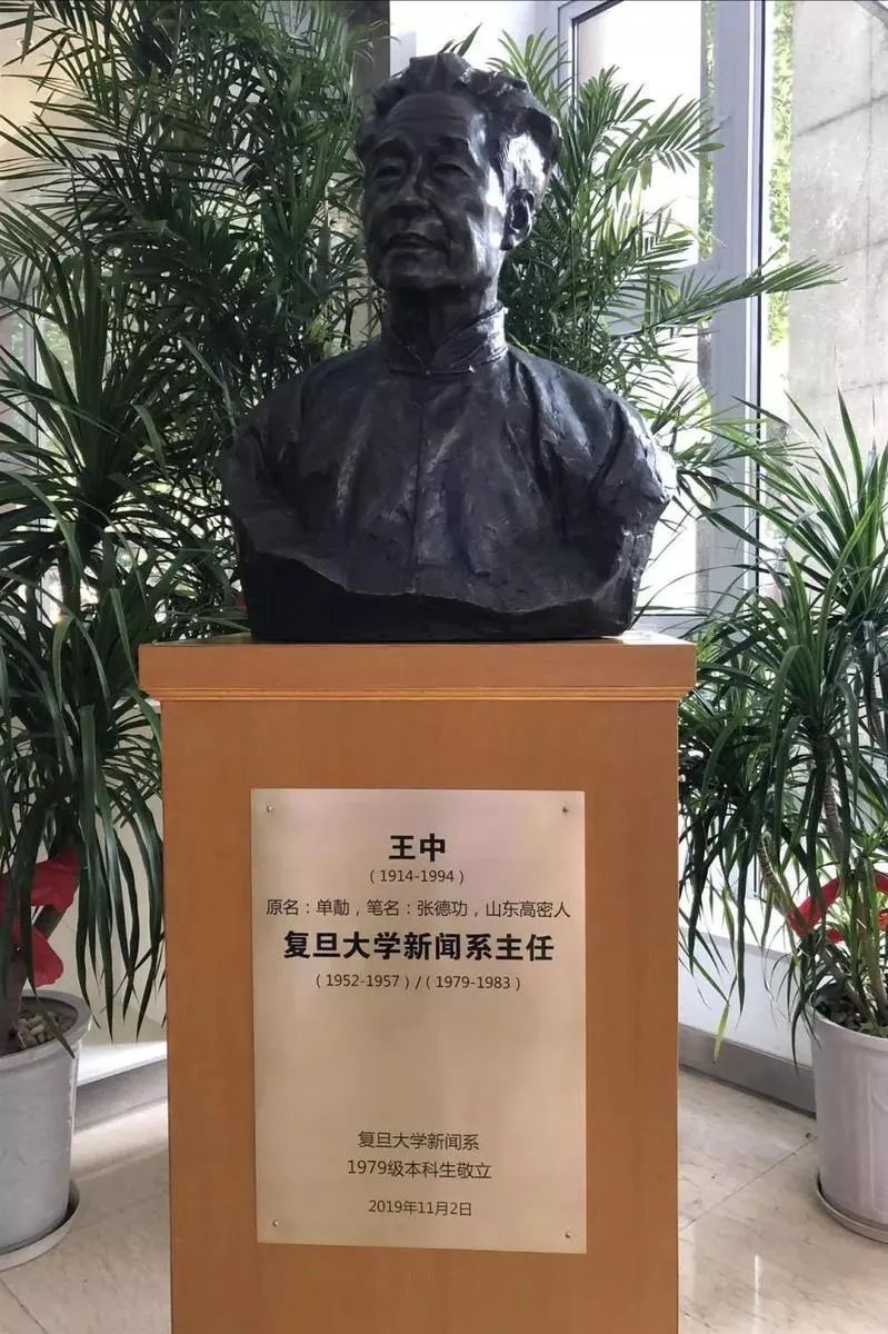 2019年,王中的半身铜像在复旦大学新闻学院图书馆落成揭幕