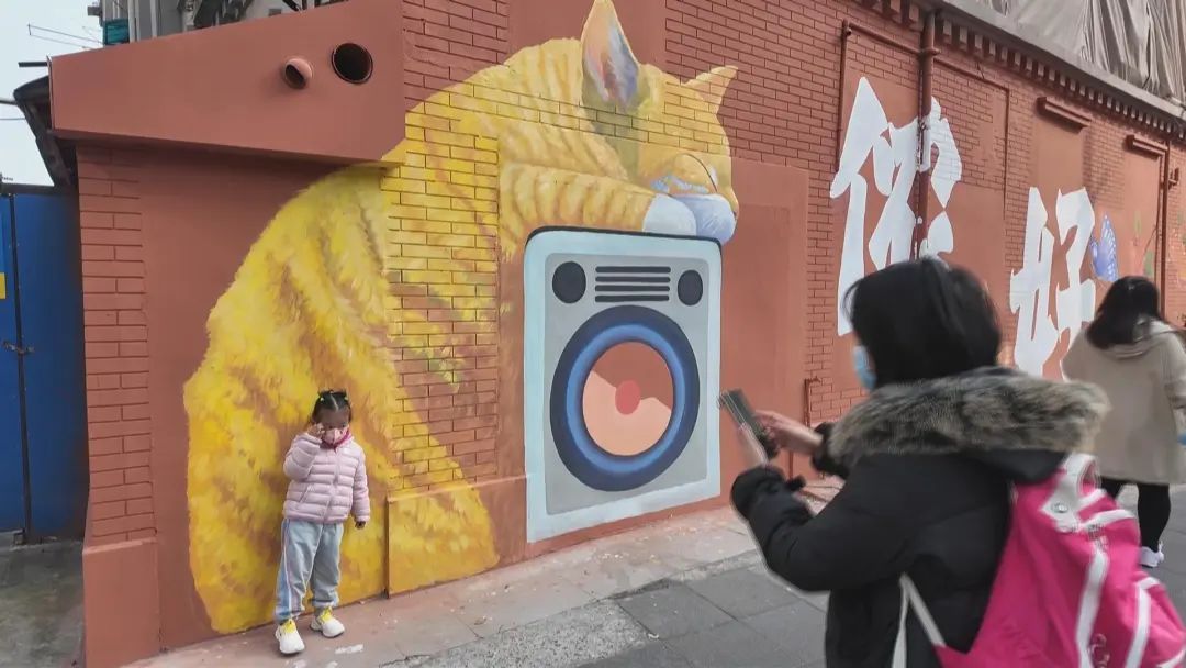 惊喜现身!在黄浦区西藏南路与会稽路的交汇处,一幅幅生动有趣的猫猫涂鸦悄然登场,瞬间成为城市中的新晋网红打卡地。温暖的色彩、活泼的线条,仿佛一股清流,为繁忙的都市生活带来了一抹温柔的“治愈风”。