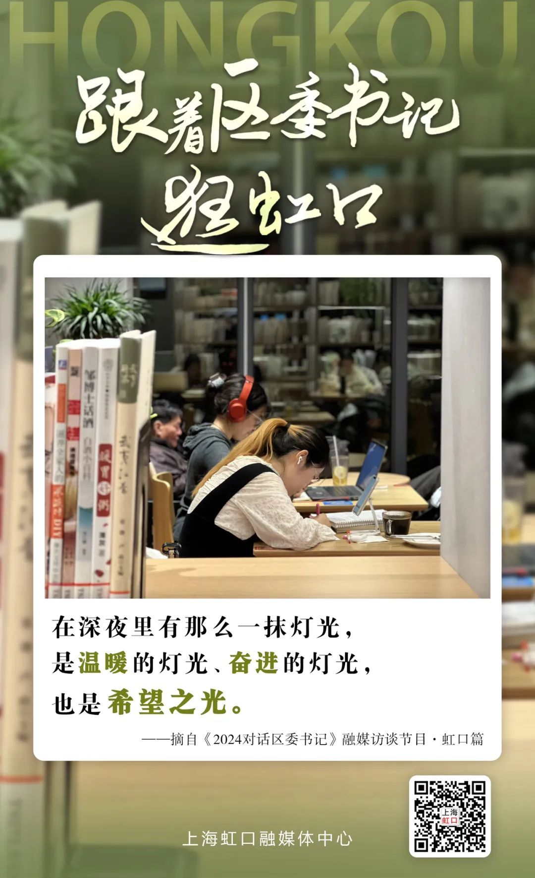 我叫陆陆,是一名来自湖南长沙的“旅游特种兵”,来上海之前,和平书院就在我的必打卡清单上,来之前我一直有点困惑,这个“网红”24小时不打烊的图书馆,真的会有人在凌晨看书?没想到来这一看,好家伙,那么多人,真是让人感觉来对了!