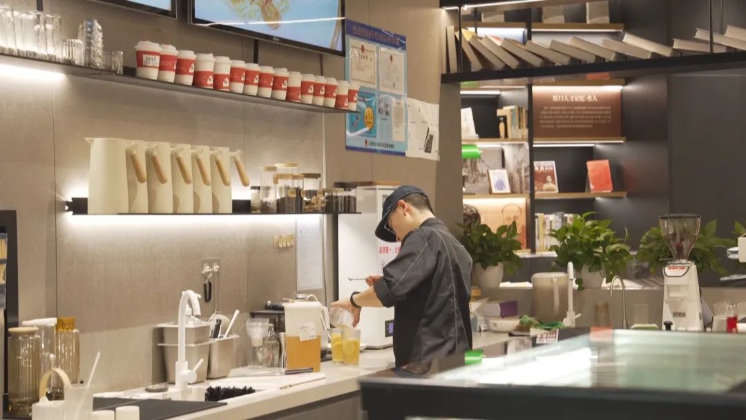 我叫小刘,在和平书院综合馆的主题餐厅上班已经三个月了。每天晚上九点,是我最忙碌的时间段之一。这时候,原本坐在二楼的读者会挪到一楼,给自己再点上一杯饮品,继续自己的夜间时光。这些温暖夜晚的饮料都出自我的双手。