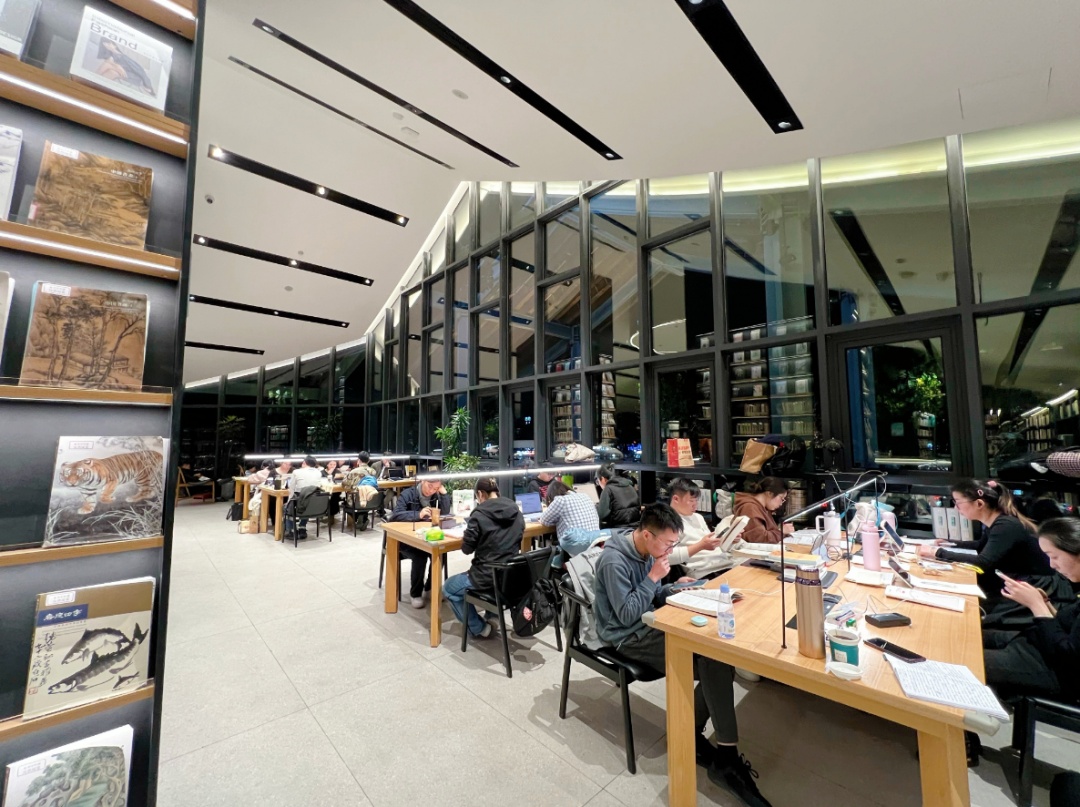 夜里的书院别有一番韵味,有老爷爷坐在书架旁的卡座,悠哉悠哉地看书,也有和我一样的年轻人带着耳机用电脑码字……这里大家都有一种默契,那就是互不打扰,一起呵护这种静谧的氛围,这可是寻常景点给不了的。