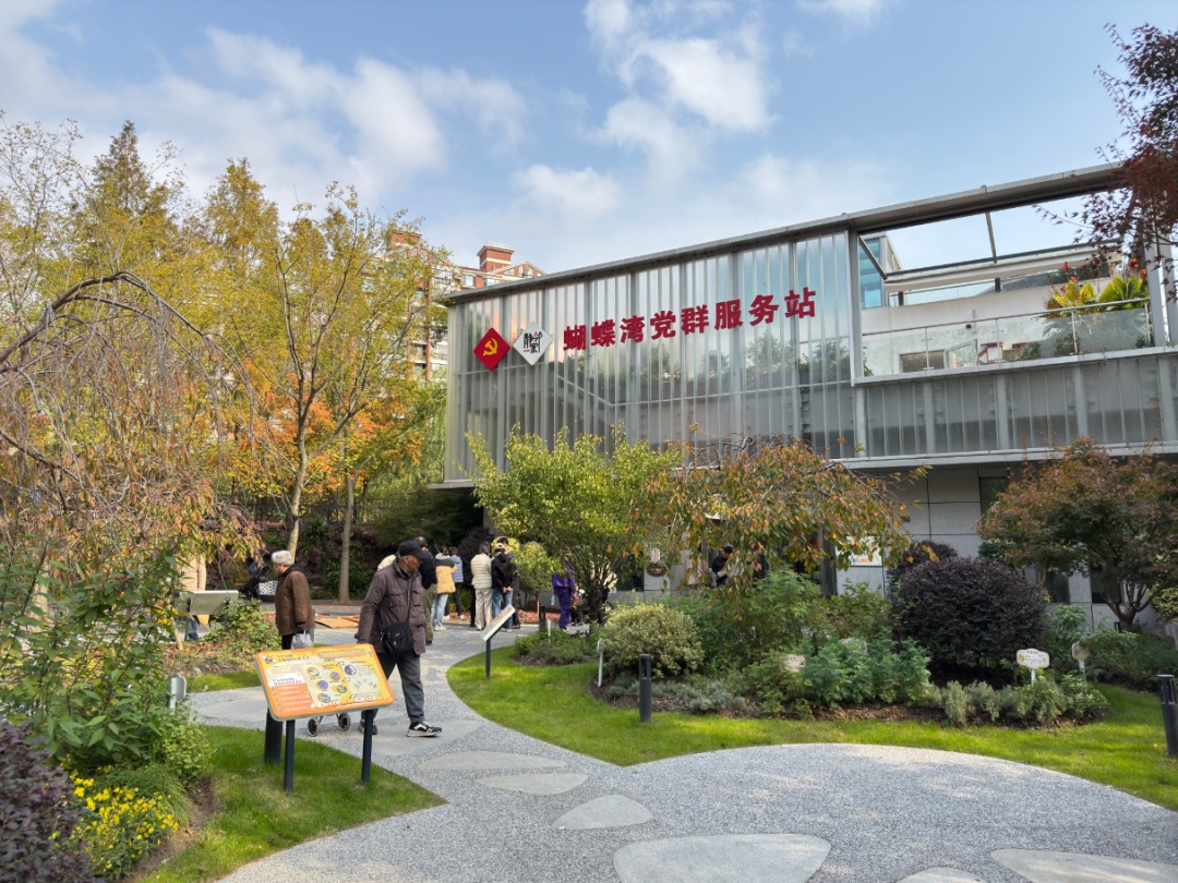 在石门二路街道生活、工作的市民群众心中,蝴蝶湾绿地中心花园是藏在市中心的一个宝藏休闲好去处,这里不仅风景优美,紧邻静谧的苏州河,旁边还有公共服务设施完善的蝴蝶湾党群服务驿站。