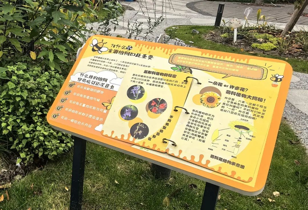 记者了解到,蝴蝶湾植物科普园新增50余种、600余株植物,是一个集自然探索与科普宣传于一体的儿童友好型植物园。该园占地面积上千平方米,以混合花境的形式,将园内三个中心绿岛分别打造为原生蜜源区、药用植物区和芳香植物区,并在各区域设置介绍相关植物科属、识别特征、生态习性、功能价值等信息的可翻页科普展板及插牌,而且其高度均为儿童友好。