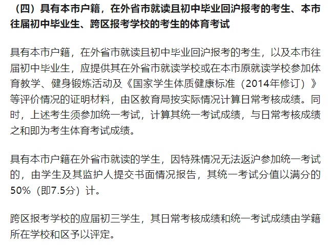 上海市教委近日发布修订完善后的《上海市初中毕业升学体育考试工作实施方案》。本实施方案自2022学年的七年级起实行。