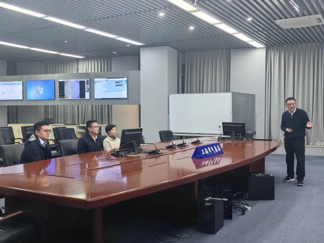张宏韬一行参观调研气象业务平台。上海中心气象台台长许建明就模型优劣势对比、示范计划支撑平台、气象模型技术路线、近期工作目标等做有关汇报。