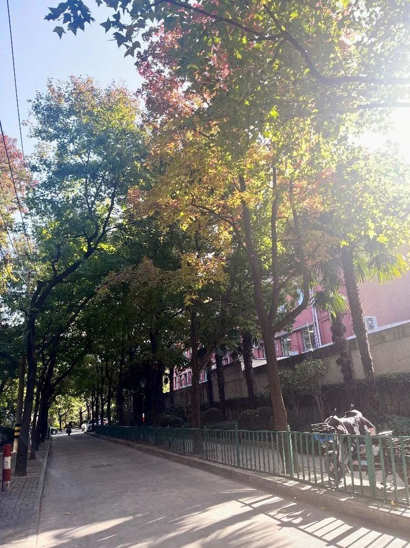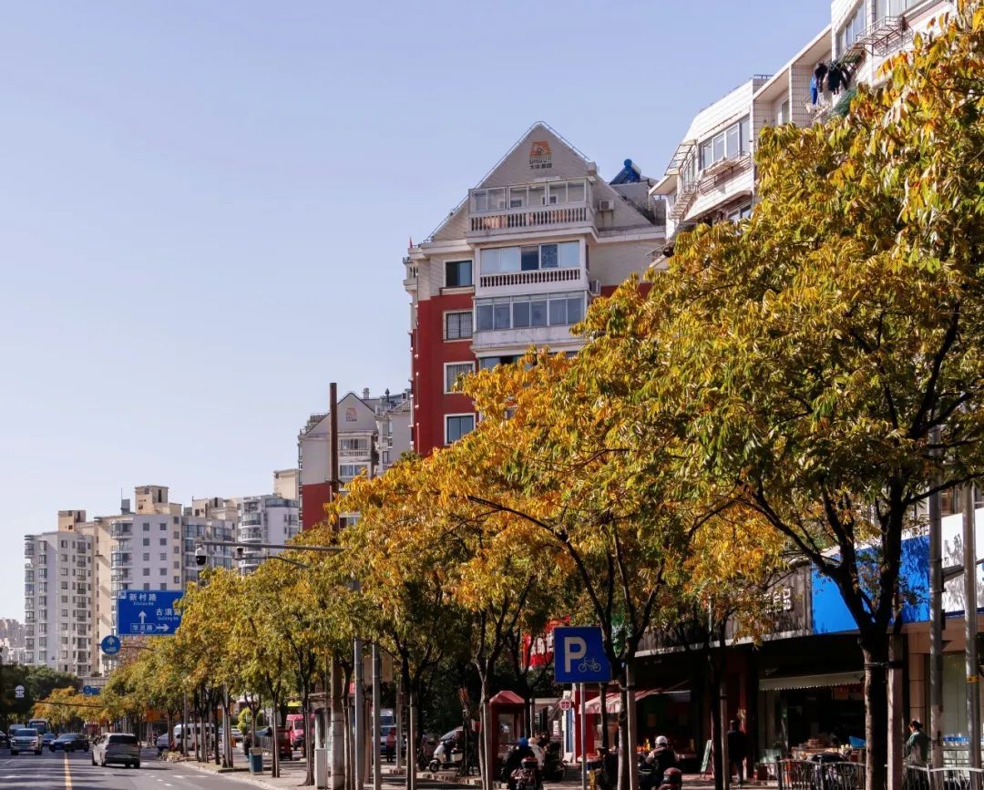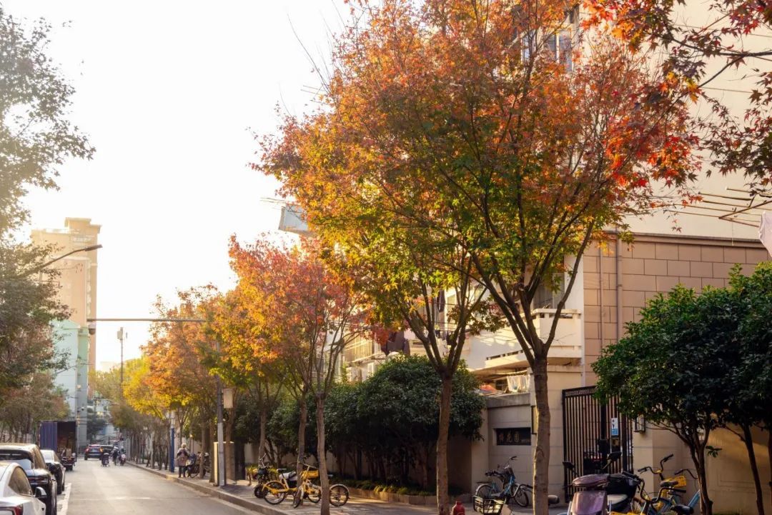 气温渐冷,大自然的调色盘却依旧丰富多彩,在这个美丽的季节里,落叶如同信使,捎来了大自然的问候。很多植物叶片将能量转移到树干、树根的同时,逐渐放弃绿色的基底,变了颜色,最终落入尘土,以抵御即将到来的严寒。随着持续贯彻落实市绿容局关于“四化”新优品种推广应用,普陀多条街头小巷种植的色叶树,呈现出美拉德色系的浓郁色彩。