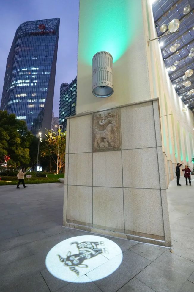 这次改造过程中,“大弯壁”不仅内外全部重新喷涂,复原开业时的崭新模样,还将每个门洞侧边的十二生肖的石板浮雕打磨一新并更新投影设备。夜晚亮灯后,剪纸图案的十二生肖投射到地面,缓缓旋转展现独特韵味。