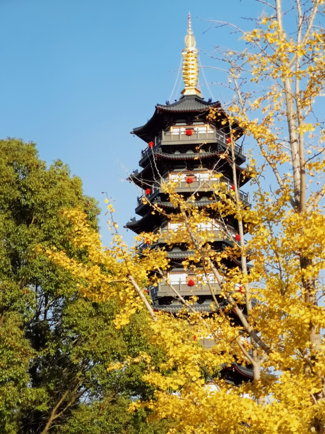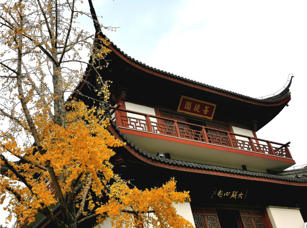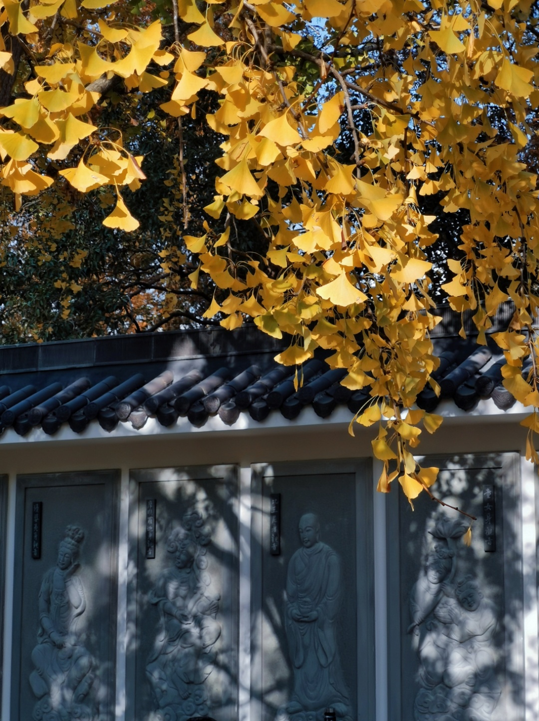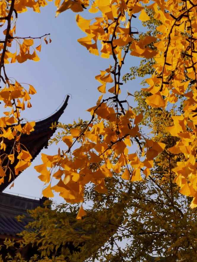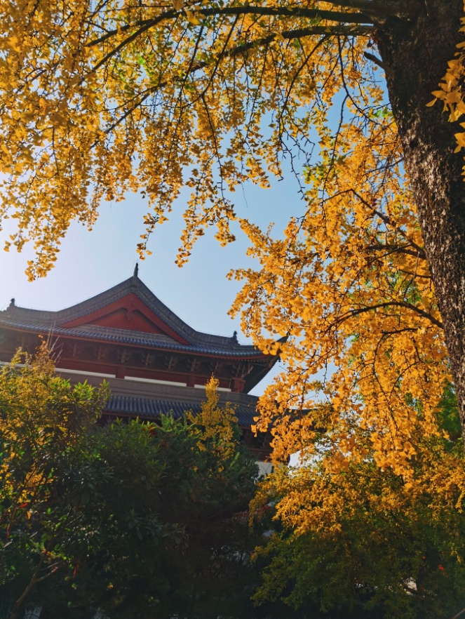 银杏树挺拔立于大雄宝殿东侧