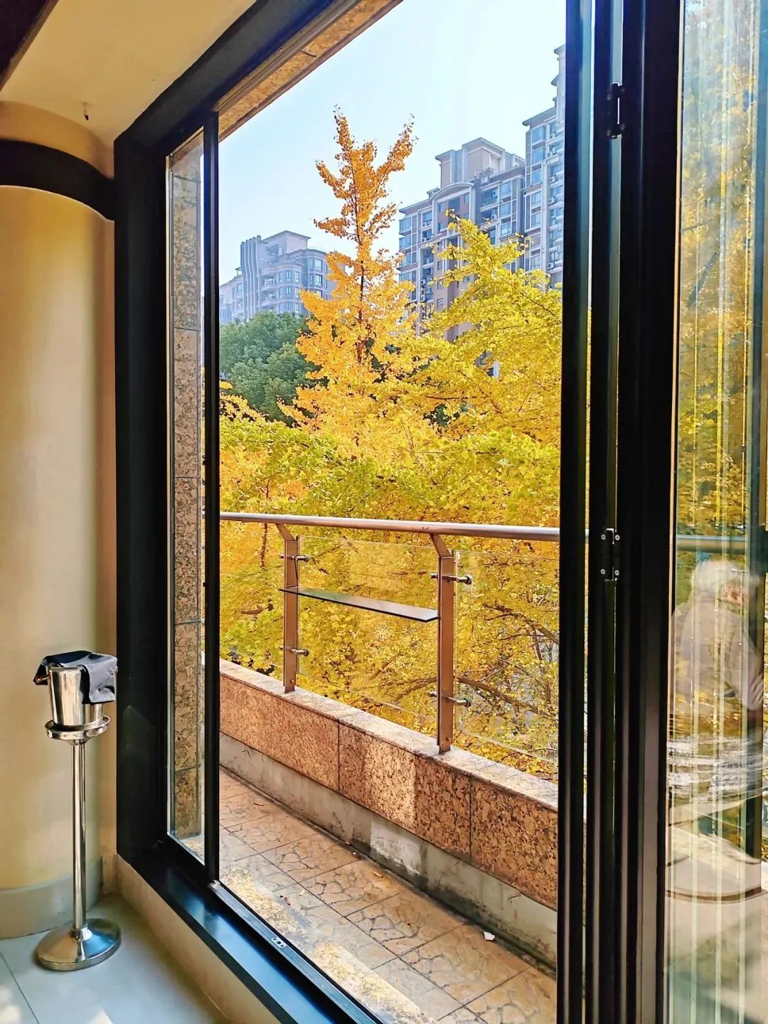 位于3楼的巨大落地窗与窗外的景色相得益彰,被称为“看得见风景的窗”。阳光倾洒,金灿锃亮,直接把氛围感拉满。推开窗户,在阳台上和银杏来一次亲密接触,是在黄金城道独一无二的体验了。