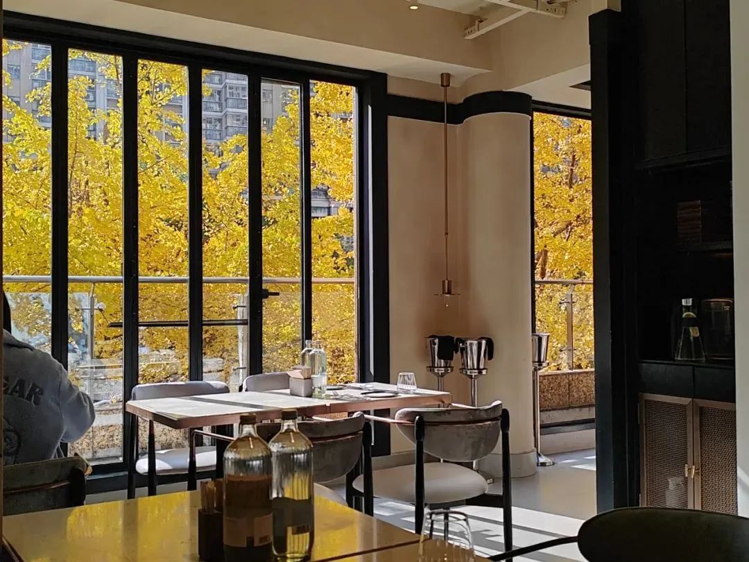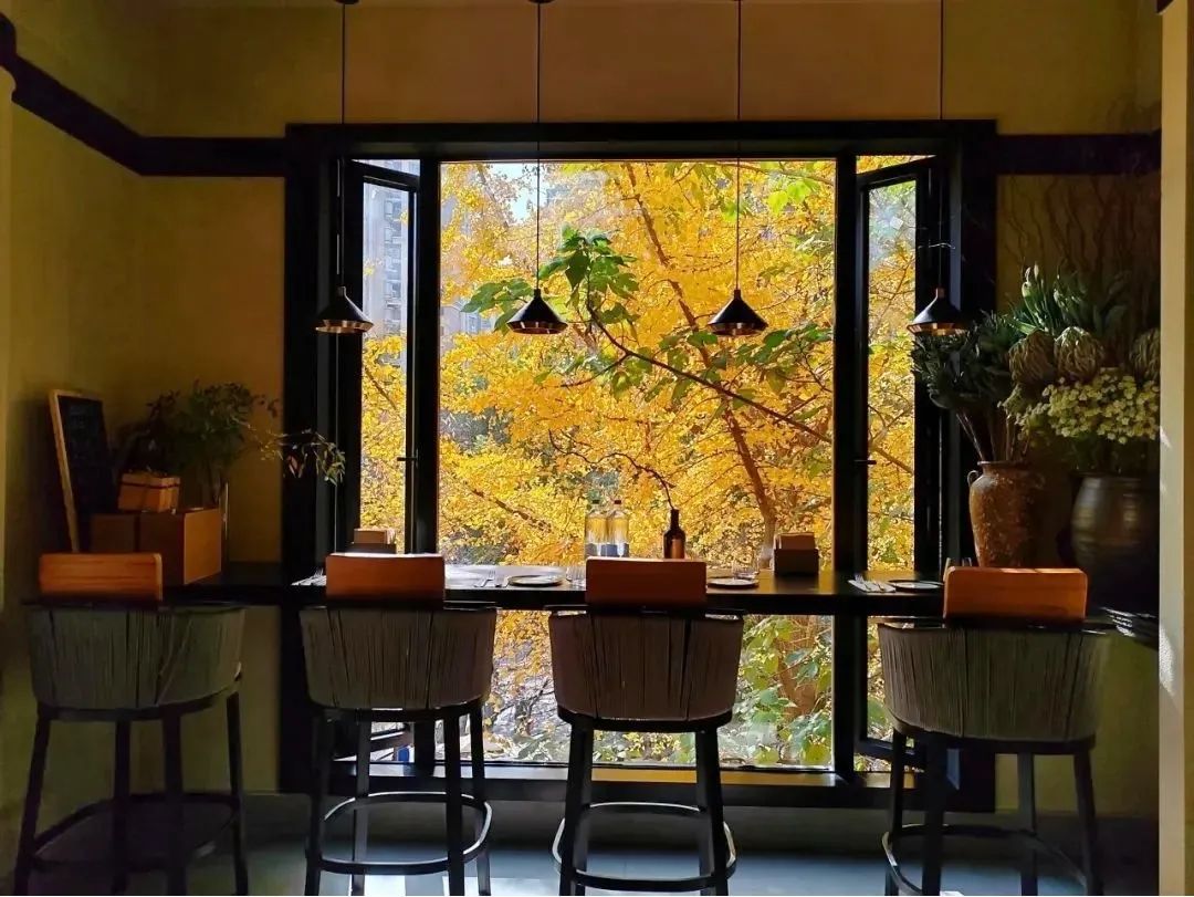 在当下这个季节,银杏树金黄的叶片透过窗户投射进室内,营造出一种梦幻般的景致,像极了一幅油画。在阳光明媚的日子里,坐在窗边,一边品味着香浓的咖啡,一边欣赏银杏叶随风摇曳的美丽景象,连空气中都充满着无尽的浪漫。