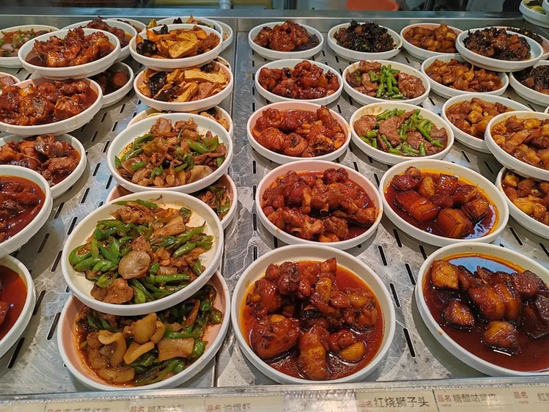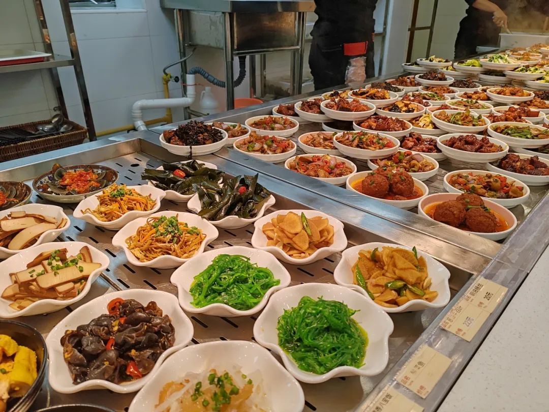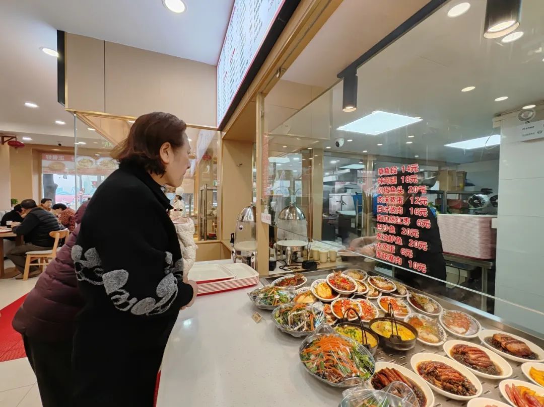 选餐区域,刚刚烹饪出的50余种菜品冒着锅气,香味扑鼻,令人馋涎欲滴。店内午餐以小碗菜为主,不仅减少了浪费,还能让居民每餐都有更丰富的选择。