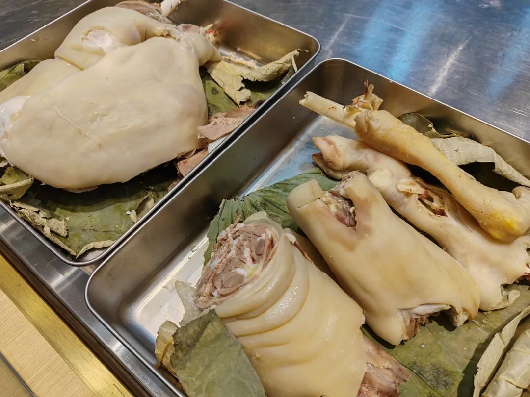 此外,店内还设有熟食专区,烤麸、叉烧、猪耳朵、三黄鸡等市民喜爱的品类应有尽有,方便市民买回家食用。冬季,熟食区还增加了东阳千祥的白切羊肉。
