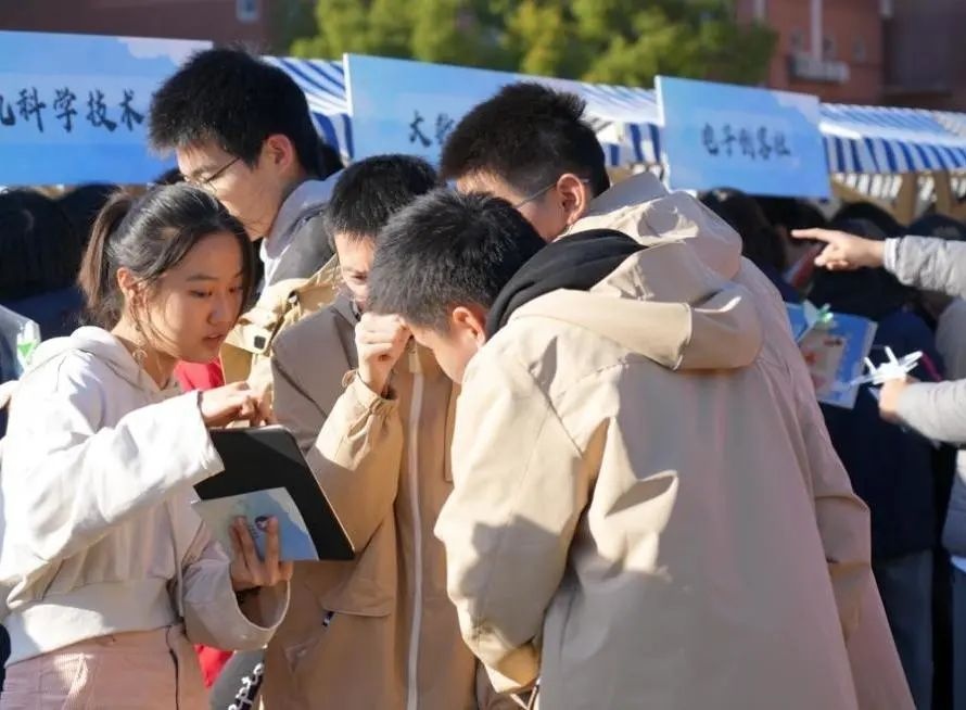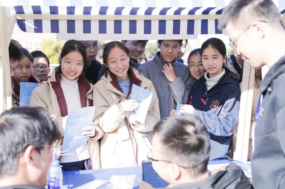 日前,“复兴梦想、旦新启航”主题游园会在复旦大学附属复兴中学举行。活动由复旦大学基础教育集团、复旦大学附属复兴中学、共青团复旦大学委员会、复旦大学教务处、复旦大学学生会主办。在复旦大学附属复兴中学的大操场上,游园会由主舞台和近30个摊位组成。复旦大学及复旦大学上海医学院的21个院系、6个学生社团纷纷“出摊”,为复兴中学的学生们展现各个院系的课程亮点、院系特色与文创产品。游园会设置了集章活动,复兴中学的同学们穿梭在不同的摊位前,聆听院系故事、参与趣味游戏,将手中的集章手册用一枚枚印章填满。主办方介绍,这些摊位的摆放饱含学生的小巧思。“从空中俯瞰的话,这些摊位摆成了FD。”相关工作人员介绍道。