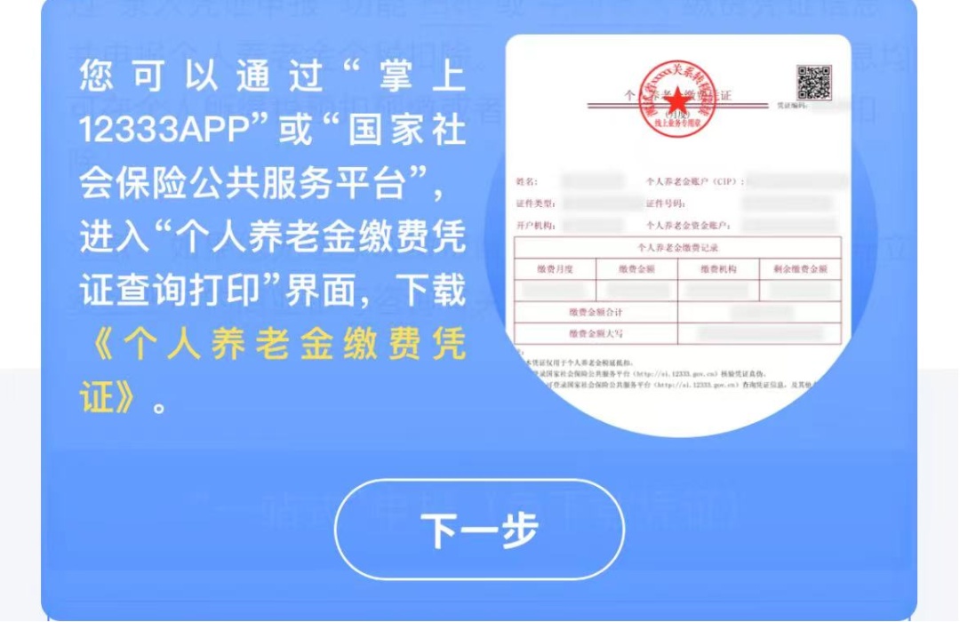 缴费凭证信息确认无误后,点击【下一步】。