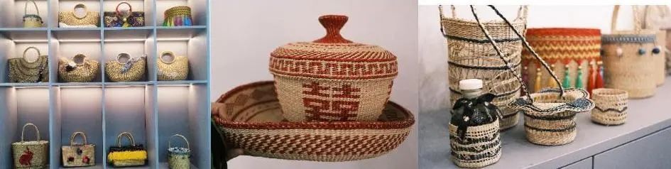 徐行草编成品花式多样,包括了二十多个大类上千个品种的生活用品,在乡村生活馆陈列了众多草编作品,有轻巧方便的拎包、草编结婚用品、小巧精致的花盆等。徐行草编在发展中不断积累和沉淀,在手艺人细腻的编织技法下,拓宽产品边界,不断尝试新的可能。
